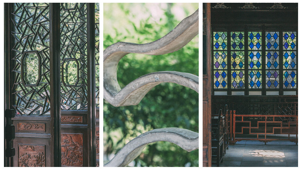 最喜欢的就是这些窗,借景看春色,别有趣味,隐而不露,曲径通幽。用门窗,用回廊,用假山,用小河把景物裁分,造成一种小中见大的效果。山重水复疑无路,柳暗花明又一村。
