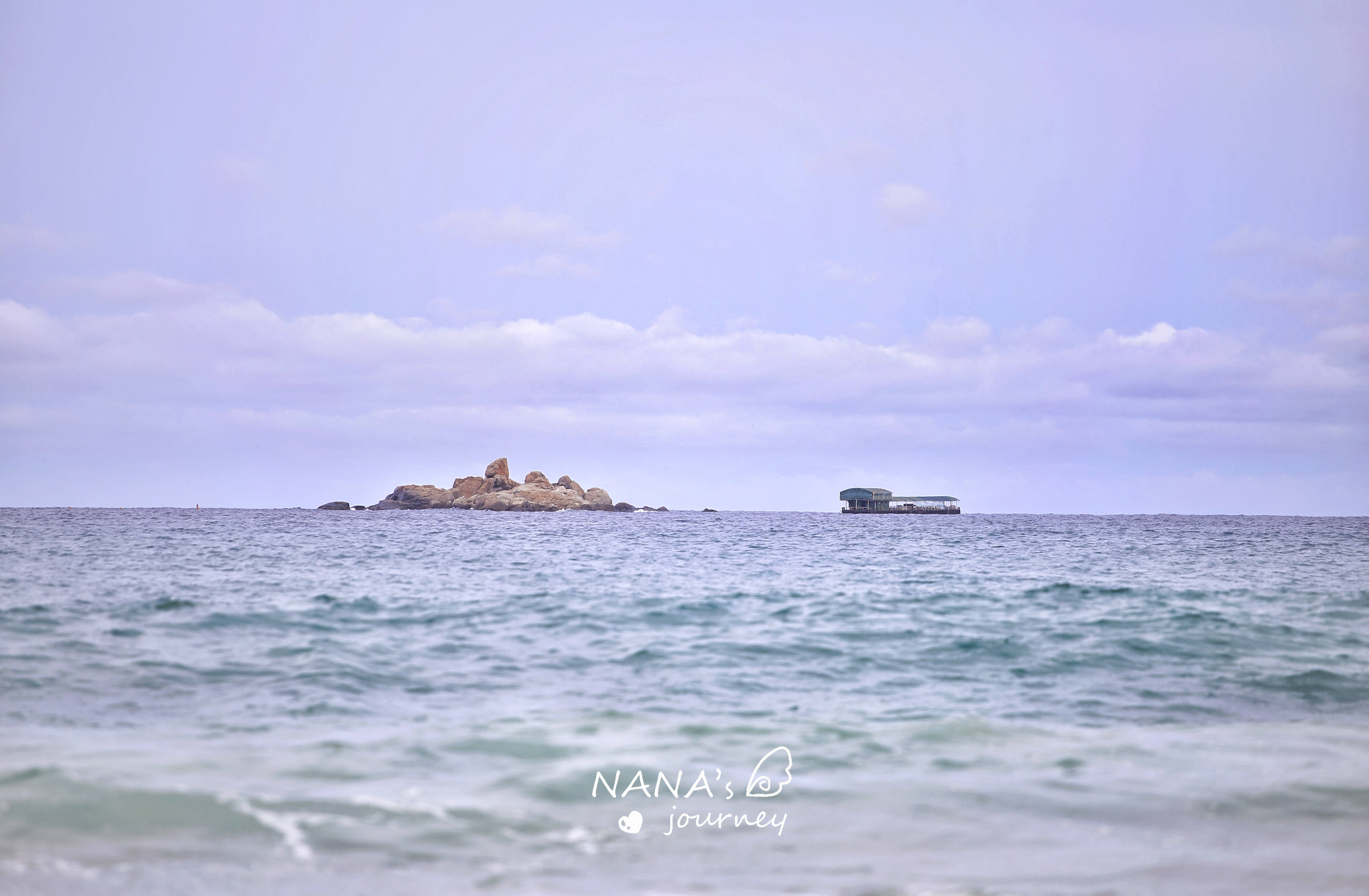 这里有一片浅滩,水不深,能慢慢走过去,这海天一线的感觉真美!