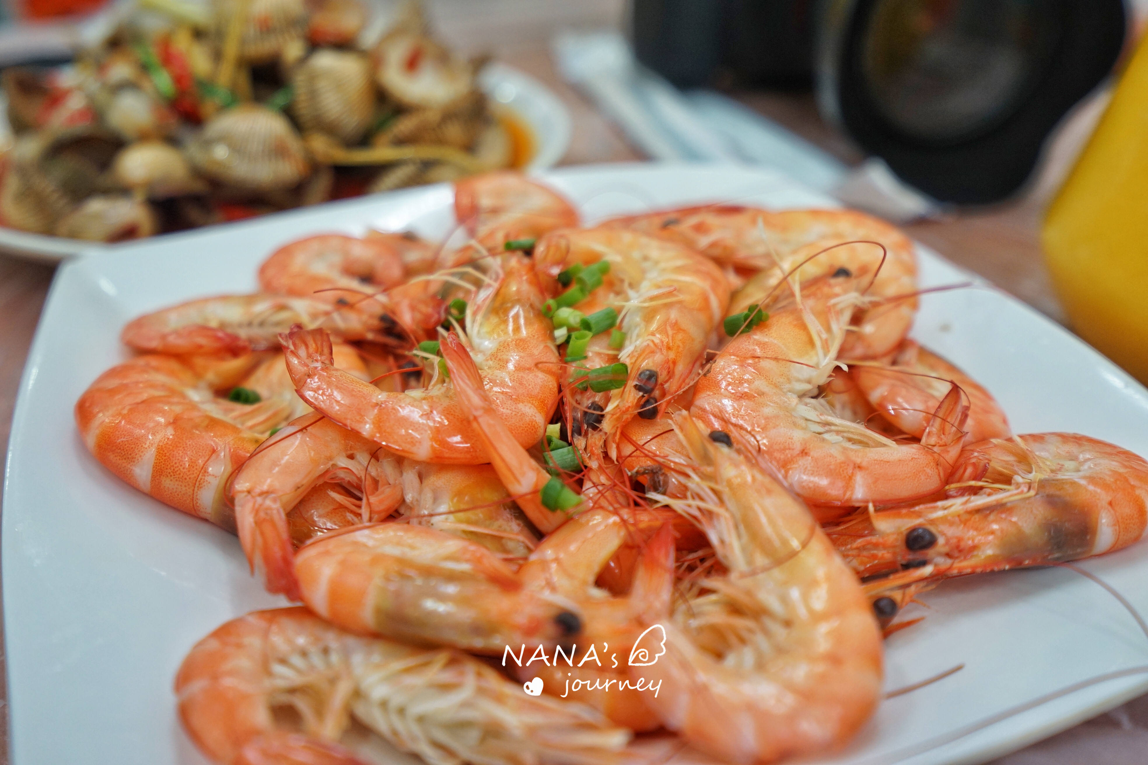 海虾被做了蒜蓉开背虾,肉比较紧致,和基围虾完全不同,口感很好~