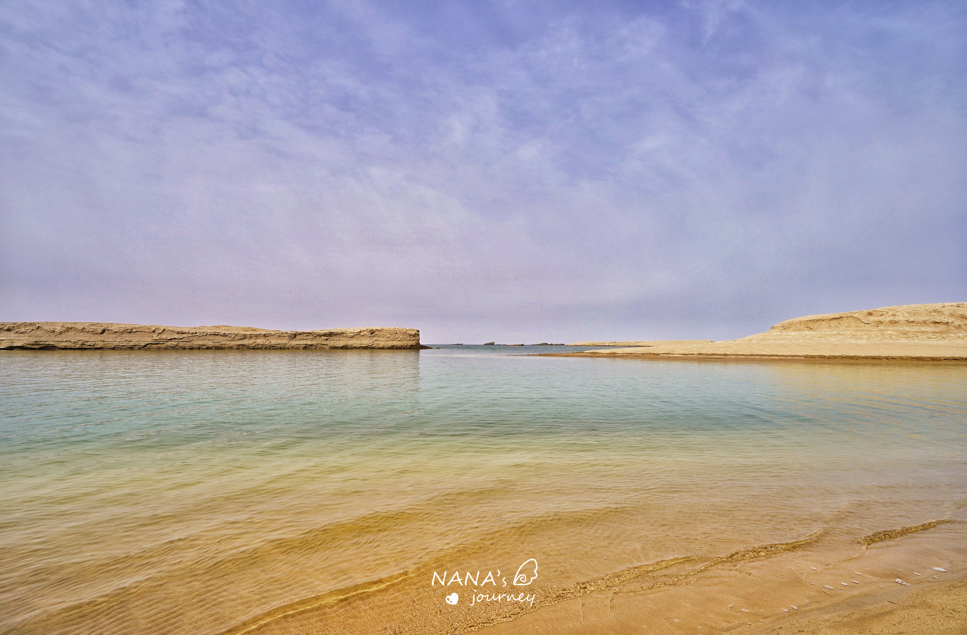 车子开到公路一半突然往戈壁里开去,10来分钟,我们就到了水上雅丹,大家兴奋的立马冲下车,往湖面跑去。