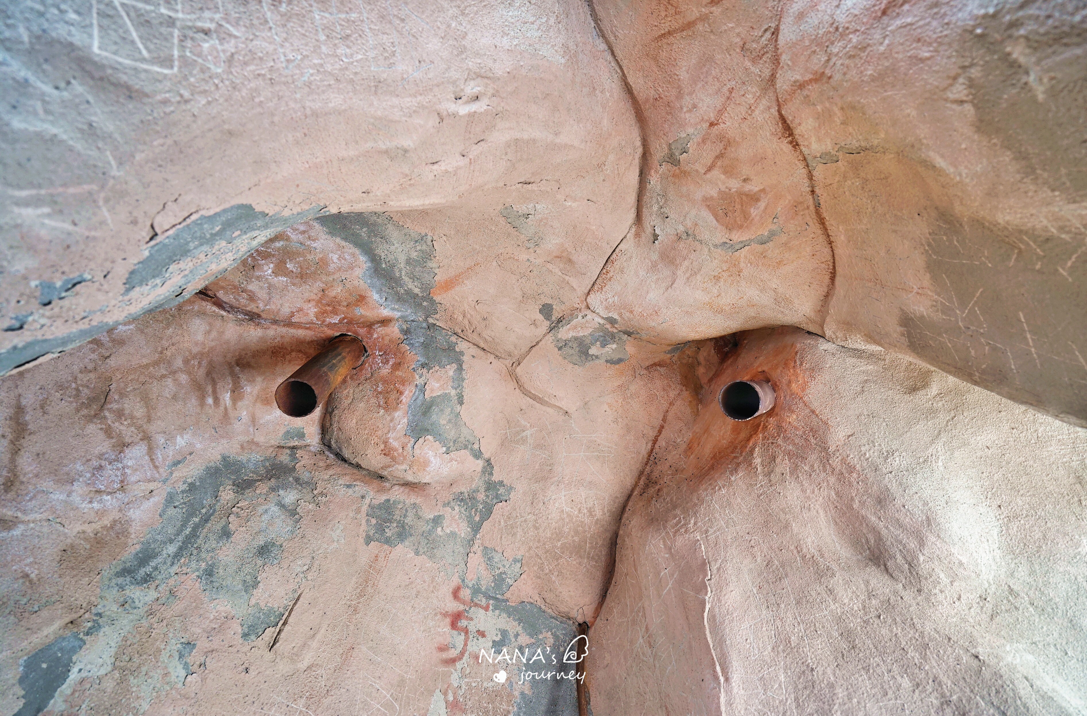这里表现的只是外星人遗址的一个奇怪的点,就是铁管仿佛直接插入石壁一般直通地底,另外就是沙漠怪圈,不过要到真正的外星人遗址才能看到哦~