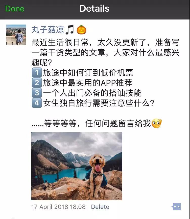 好久没更新了,感谢你们还没有取关,上周发了一条朋友圈征集大家旅途中最想知道的一些问题,如图,最后回复最多的是:1⃣️如何订到特价机票,走过路过不要错过,攻略来啦!