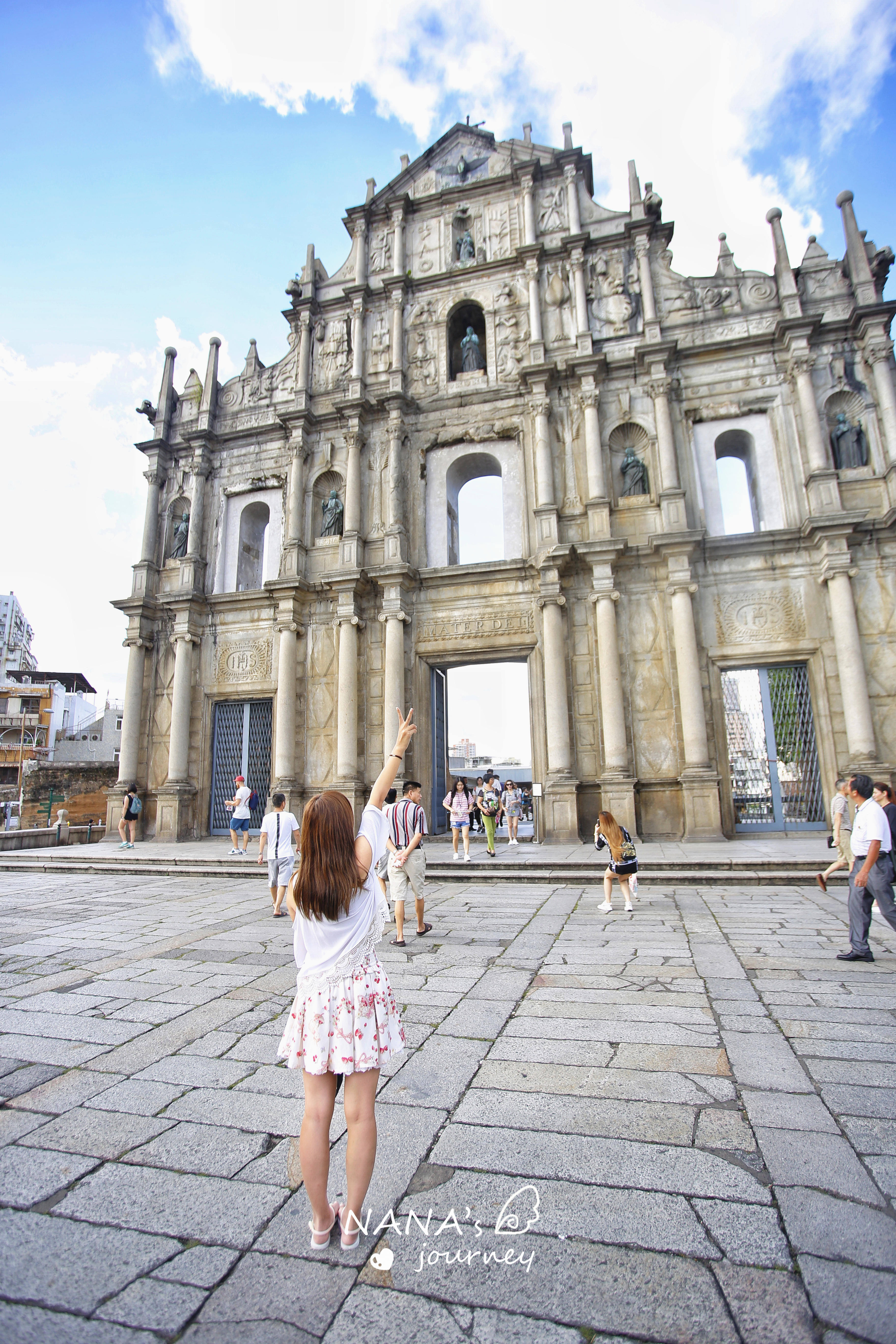 大三巴牌坊,原为圣保禄大教堂的前壁,因大火现只剩下这一面前臂,也成为了澳门的地标