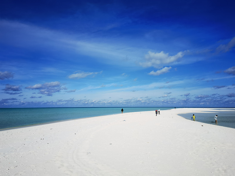 沙洲上的沙子又白又细,完全不用担心硌脚;