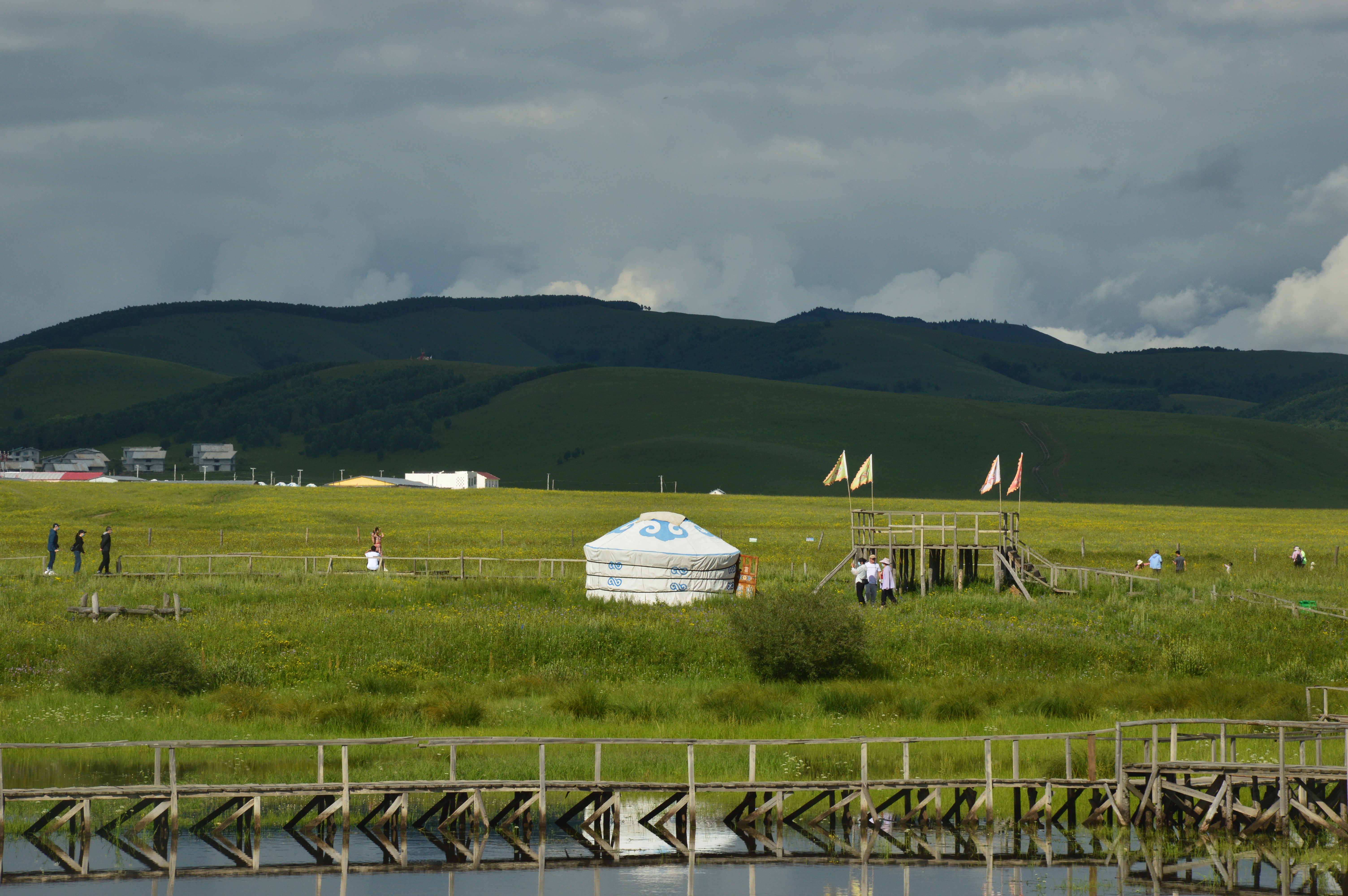 乌兰布统草原位于克什克腾旗最南端, 与河北围场县的赛罕坝林场隔河相望,距北京只有300多公里,是一个集山、水、花、草、林,古迹于一体的旅游区。乌兰布统是清朝木兰围场的一部分,因康熙皇帝指挥清军大战噶尔丹而著称于世,更以其迷人的欧式草原风光成为中外闻名的影视外景基地。这里属丘陵与平原交错地带,森林和草原有机结合,既具有南方优雅秀丽的阴柔,又具有北方粗犷雄浑的阳刚,兼具南秀北雄之美。四季皆宜,处处皆景,是摄影之乡、天然画廊、露天影棚。