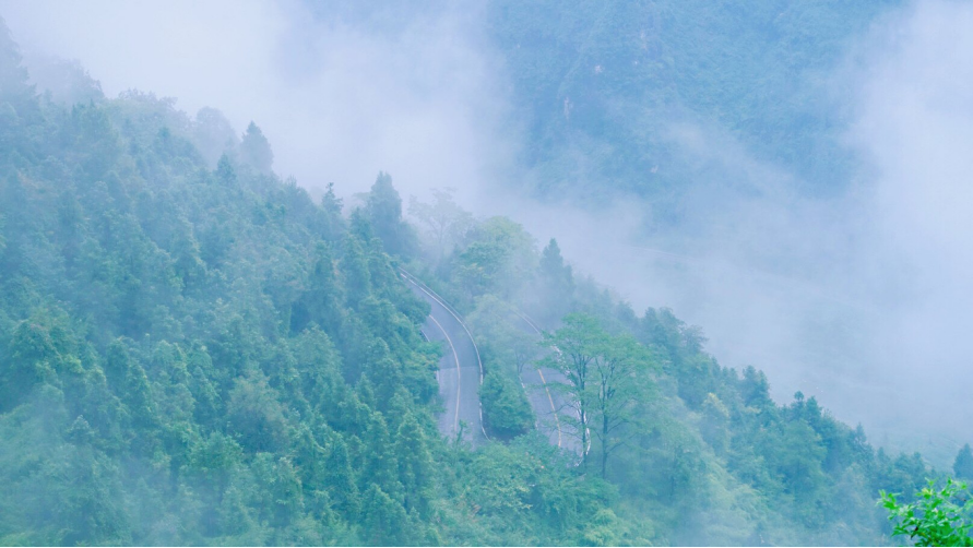 德夯大峡谷山高谷深,风大雾多,山下的村寨也好,远处的山峦也好,皆被云雾笼罩,