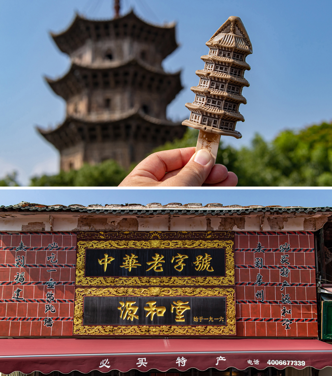 从开元寺出来,建议你一定要去西街的游客服务中心稍作停留,这里最不能错过的肯定要数东西塔形状的网红雪糕啦,买只雪糕来到游客中心三楼的平台,和东西塔合影打卡,可是最潮的留念方式。