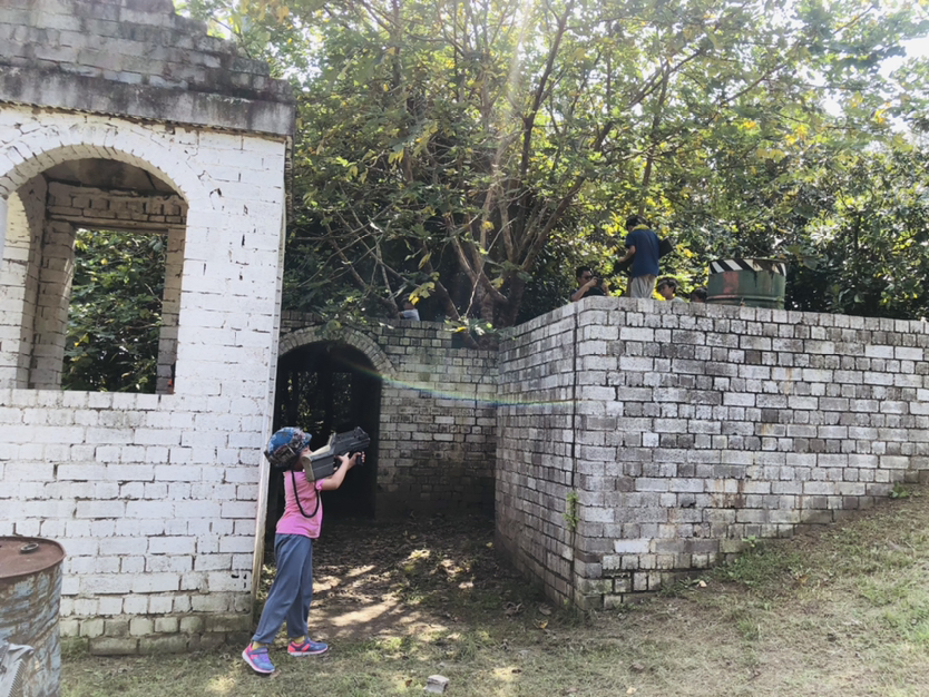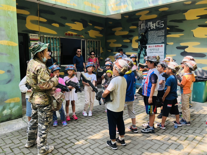 由于担心第二天下雨,本应第二天开始的真人CS,提前到下午进行啦,场地里老师认真的给小战士们喷驱蚊药水~
