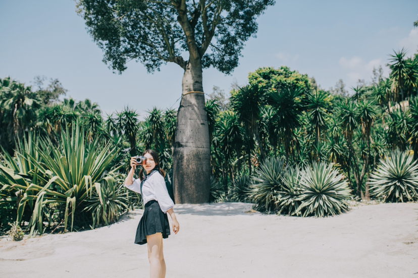2️⃣厦门植物园沙漠区可以穿的夏日风,白色,蓝色,黄山的小裙子,或者JK制服都是非常合适的,非常具有活泼甜妹风格;