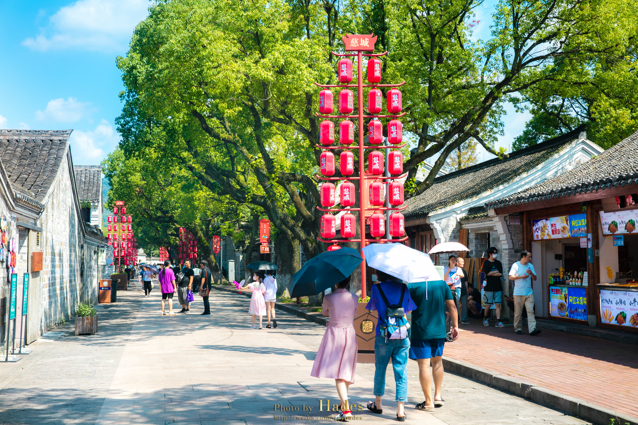 天空蓝的耀眼,灯笼红的夺目。慈城古县城历史悠久,商业氛围不重,城中的老宅都有居民居住,很有烟火气息,适合静观慢走,只有主街上店铺林立,游人如织热闹非凡。