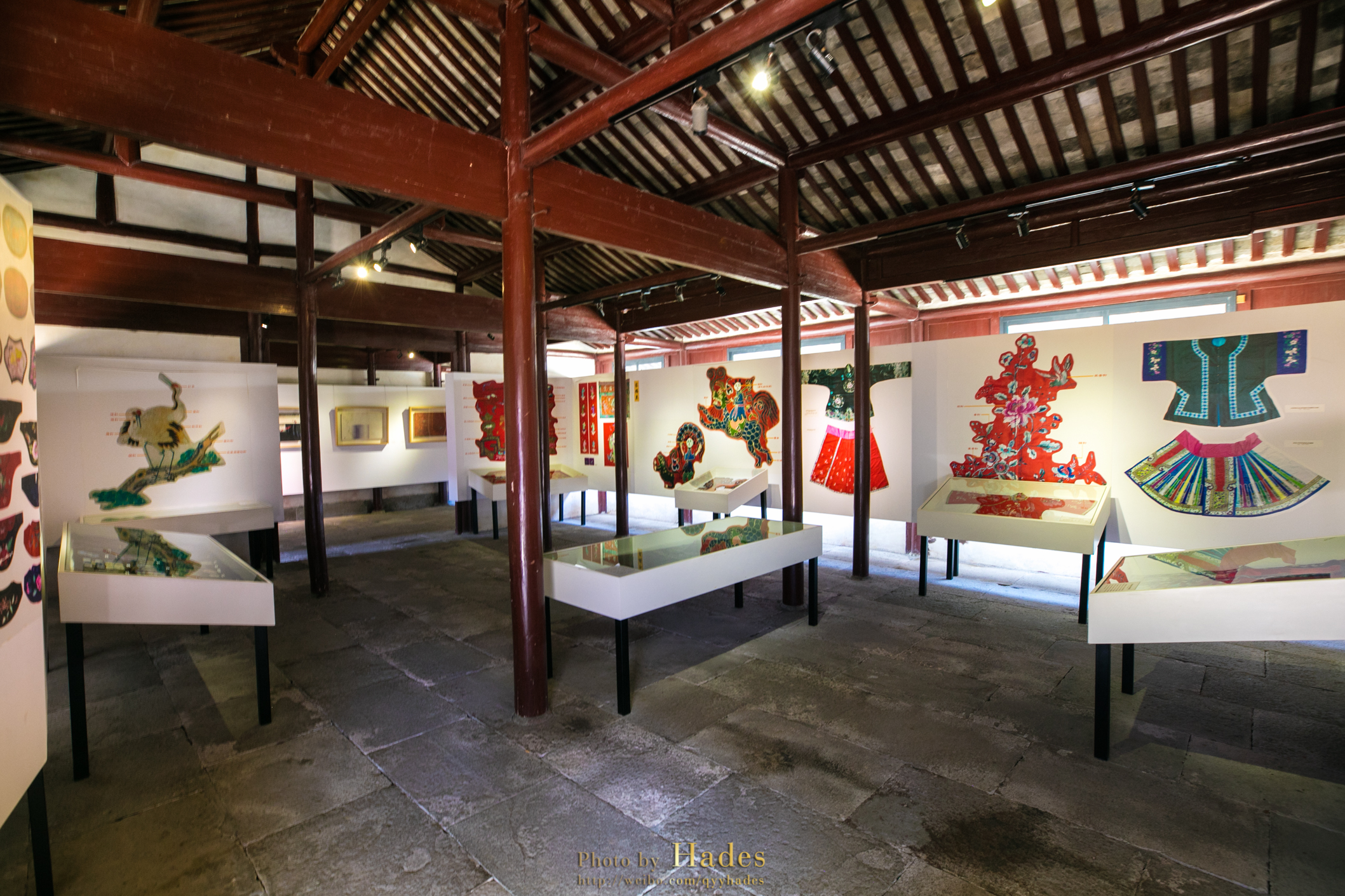 冯岳彩绘台门院内的各个区域,现在被布置成了艺术展,分别为中国女红馆、中国刺绣馆、纺织馆和蓝印花布馆、中国结馆等。各个主题艺术展馆,涵盖了众多艺术大师的精心制作,对传统技艺缝、织、印、编等生产的技法,进行了图解和归纳,在这里,游人可以更直观的感受传统技法和传统纹样的意义。