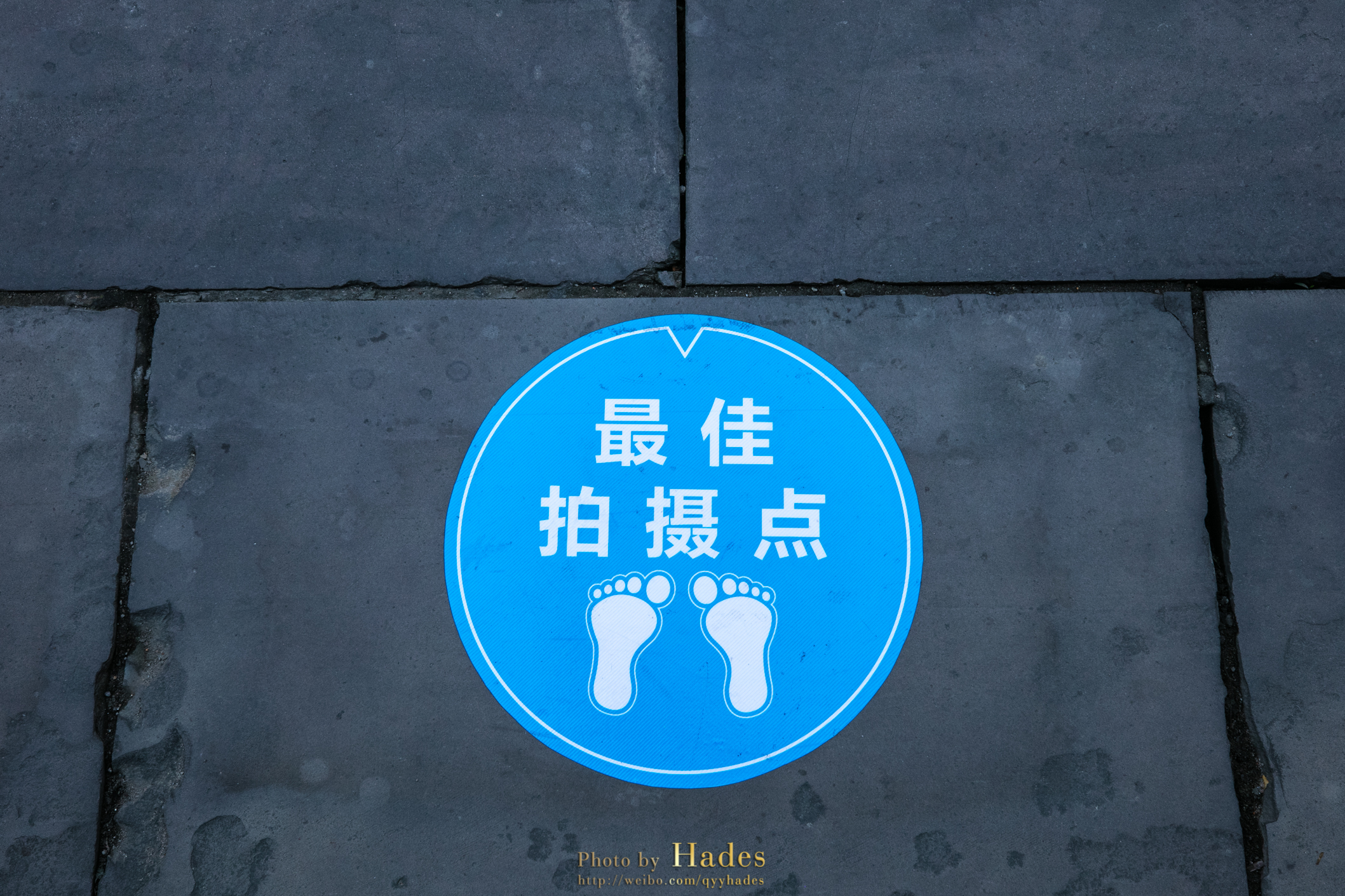 下了考场,我们移步到冯岳彩绘台门。在慈城,会发现很多景点的地面上都这样蓝标的最佳拍摄点,站在这点上,可以准确的判定古建或景点的拍摄C位,喜欢咔咔咔的旅友,拍照打卡可以更轻松些。