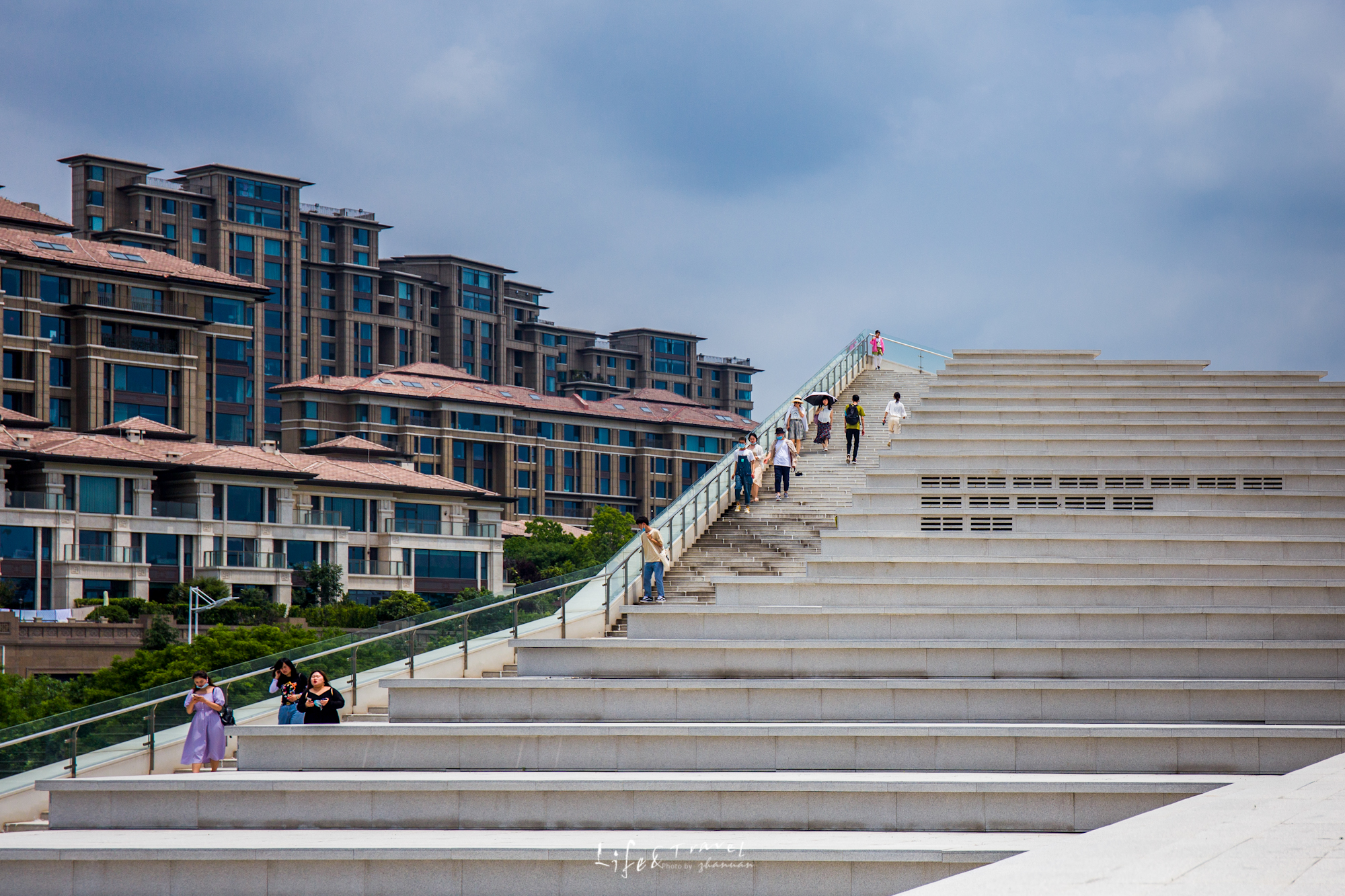 但如果说在栈桥位置,可看到对岸有一“类似 悉尼 歌剧院”造型的圆形建筑,便是。