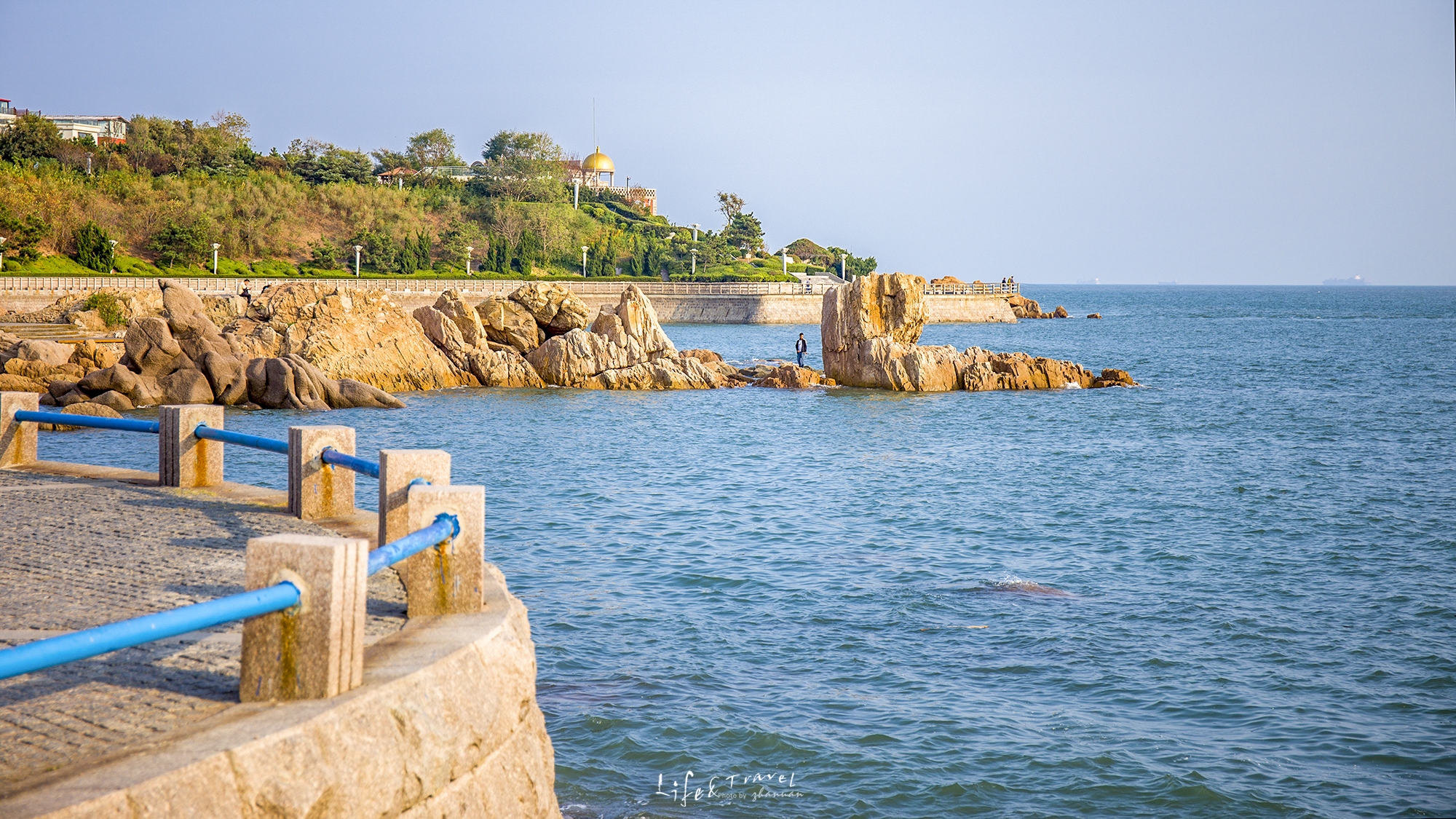 从鲁迅公园西侧的琴屿路进入,在一侧便看见小 青岛 公园的路牌,逆着风慢慢地走过这段环海公路,路边有在整理物品的钓鱼人,公路下礁石也是值得停留的地方。