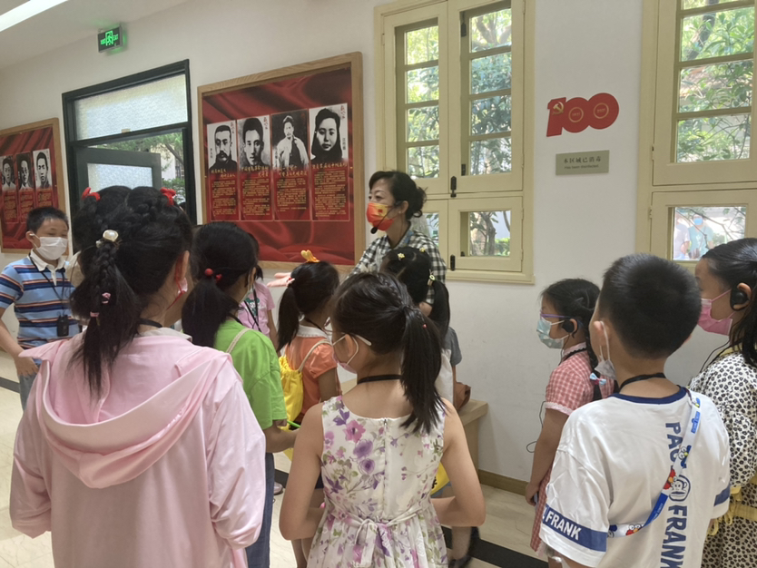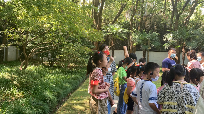 老师带领小朋友们到院子里参观房子的建筑,主体建筑为一幢乳白色船形的假三层西式楼房,建筑面积有700平方米,房间内有客厅、餐厅、书房,二楼是宋庆龄的卧室,办公室和保姆李燕娥的卧室。
