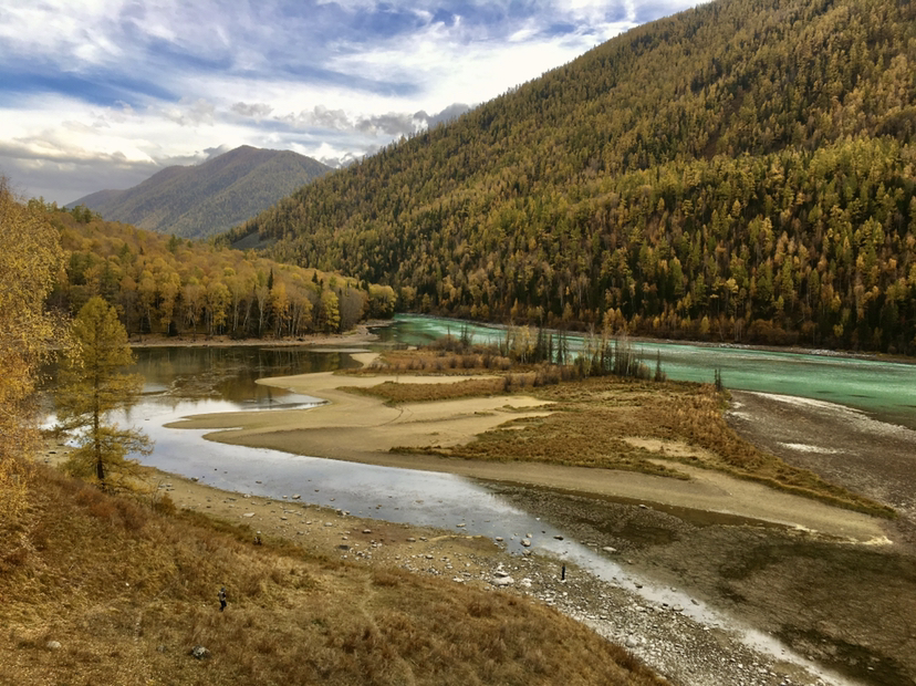 白哈巴村位于两座大山之间,是一个幽静小山村