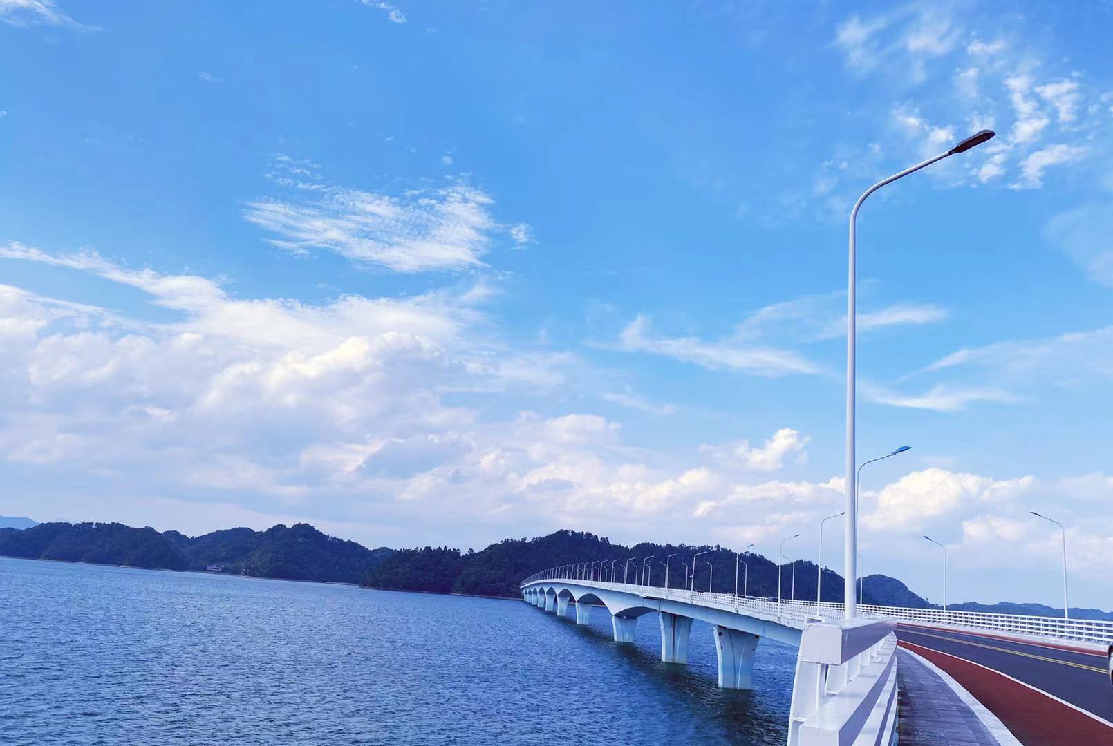 经过第一个集合点千岛湖大桥,一群人在千岛湖大桥合照纪念