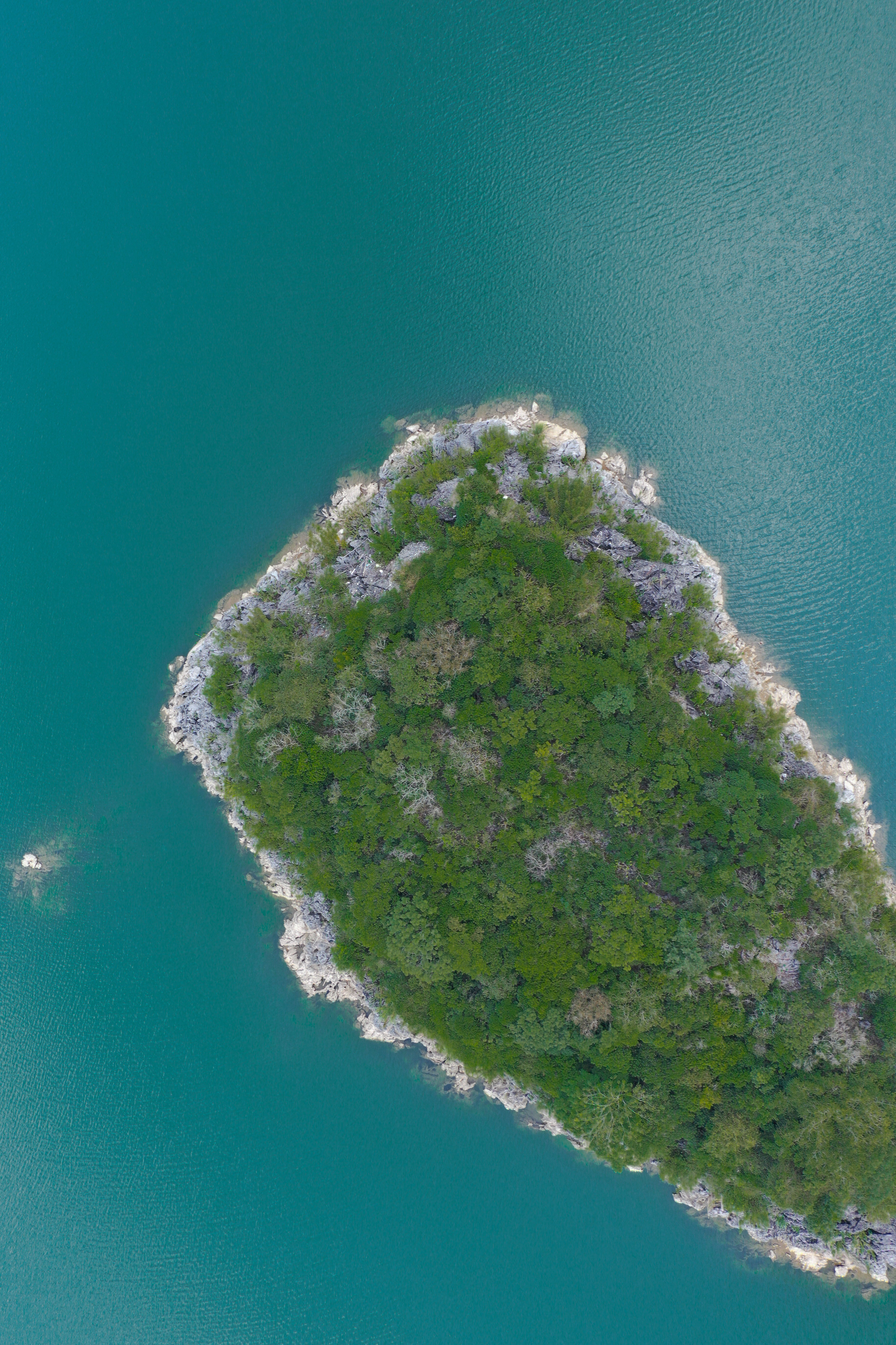 在无人机的视角下才能真正感受到这个水库的壮阔,上帝视角下湖面的颜色也显得更加的透亮。