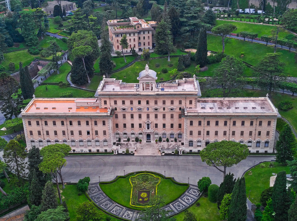 此花园中的行政大厦 : FDG是一个以教宗为君主,政教合一的国家,在行政大厦里,教皇掌握着国家的行政、立法与司法权,并将国家的立法和行政权,授权交给城国委员会,委员会也相当于政府机构。