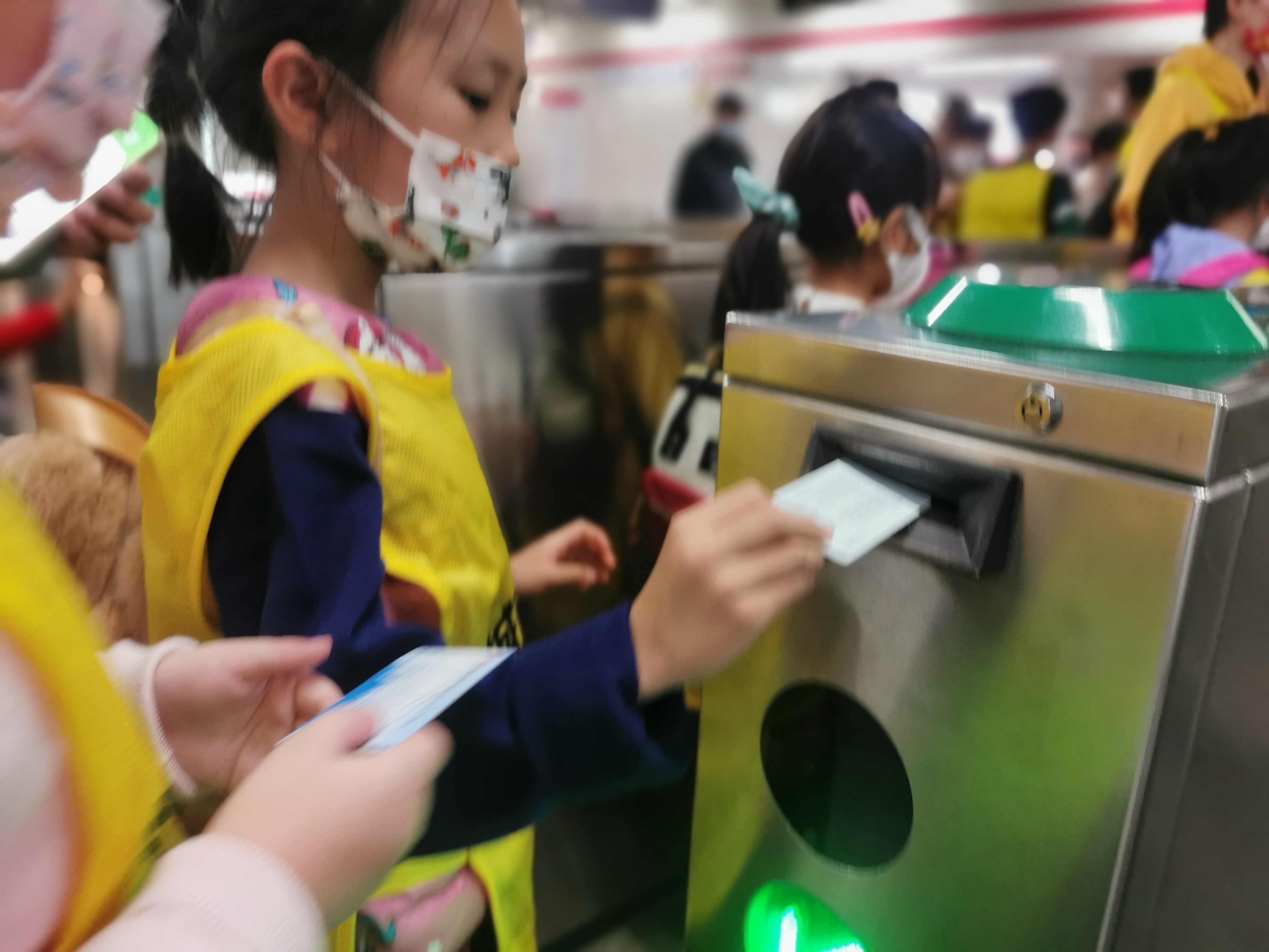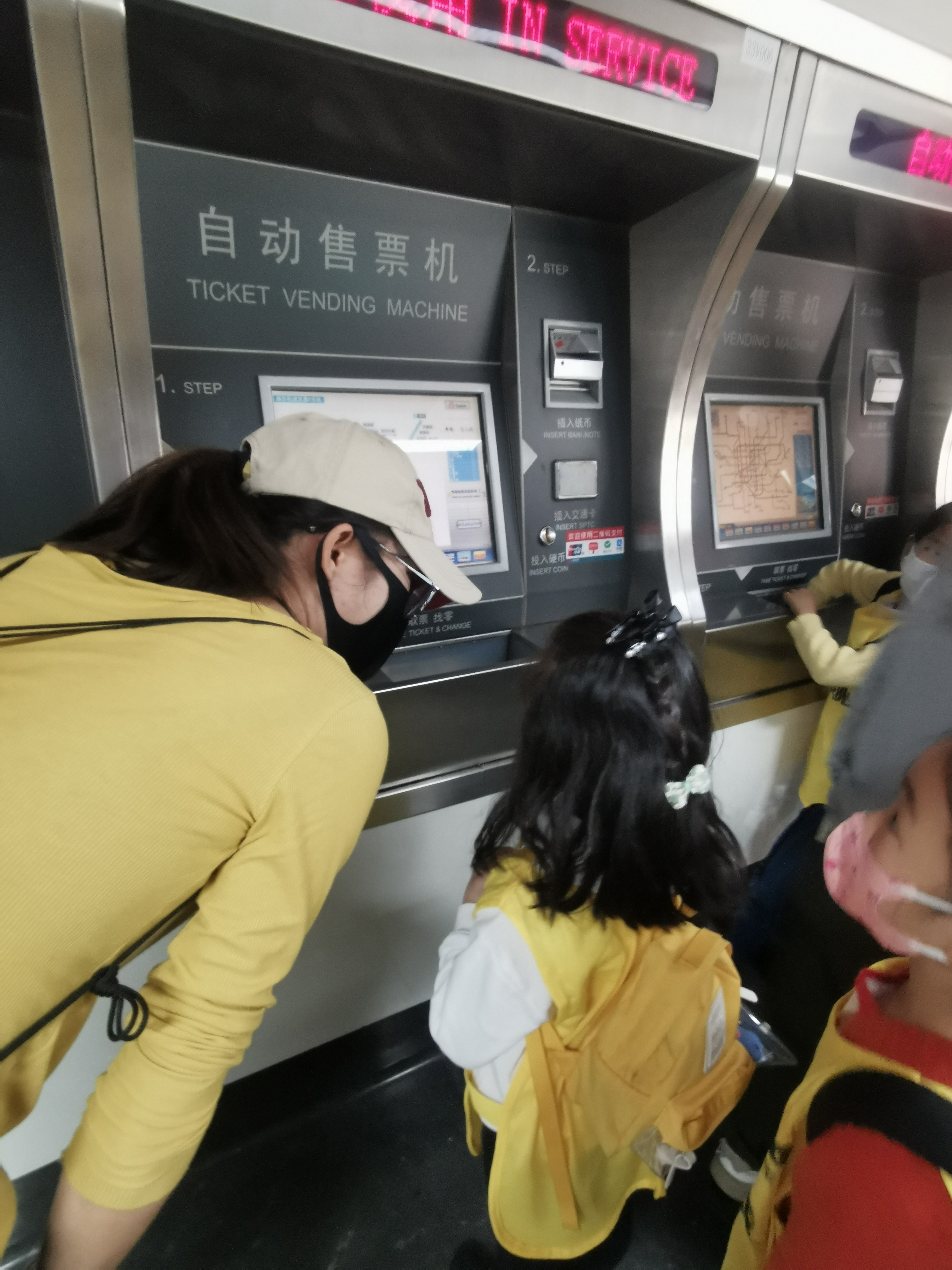 宝贝们一起学习并亲身尝试自己确认目的地,以及购买地铁票。
