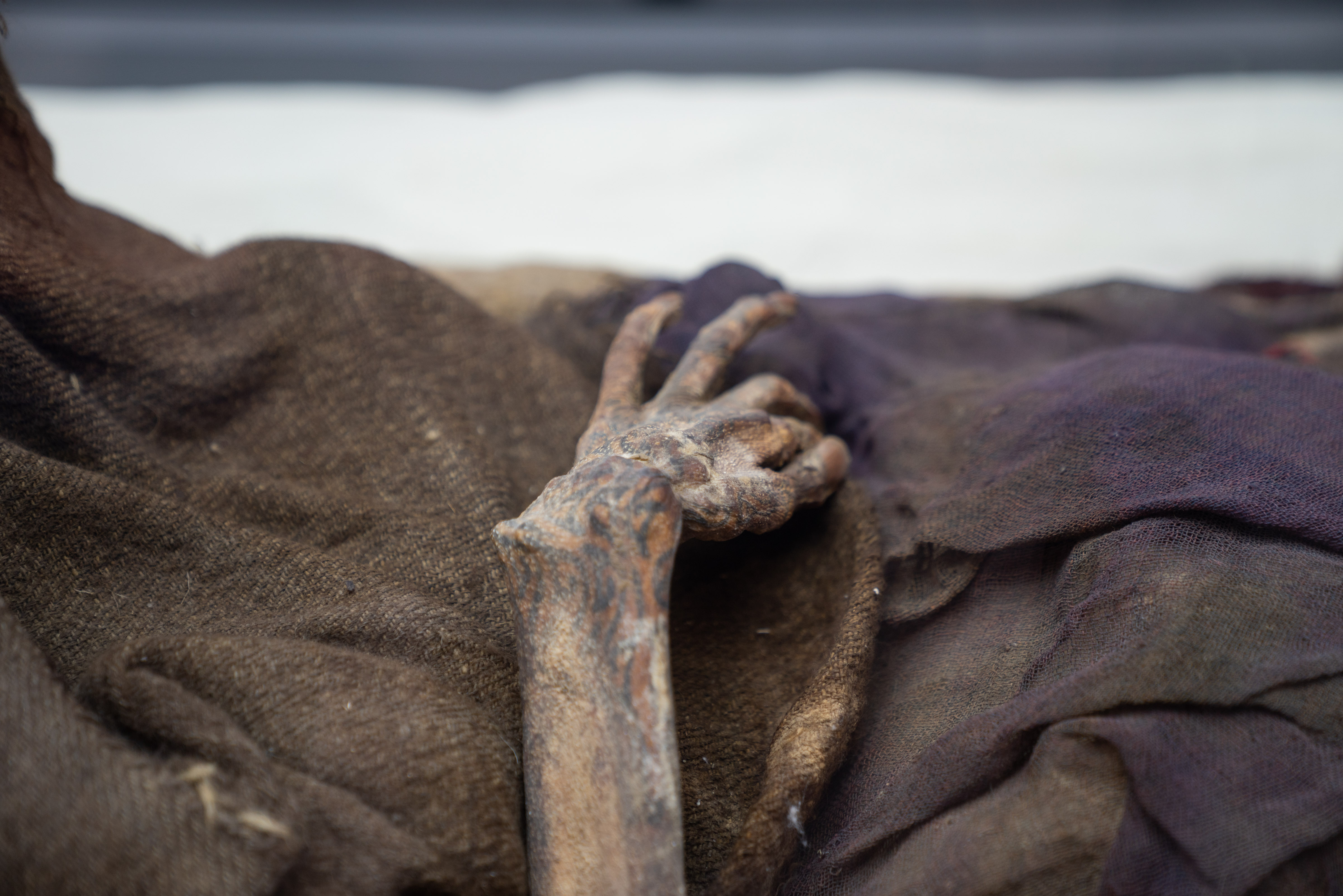馆内存放了小何墓地发掘的3000年以上的干尸,由胡杨木,牛皮包裹,在罗布泊深处存放了千年不腐,如今毛发、皮肤依旧保存完好,令人感叹。