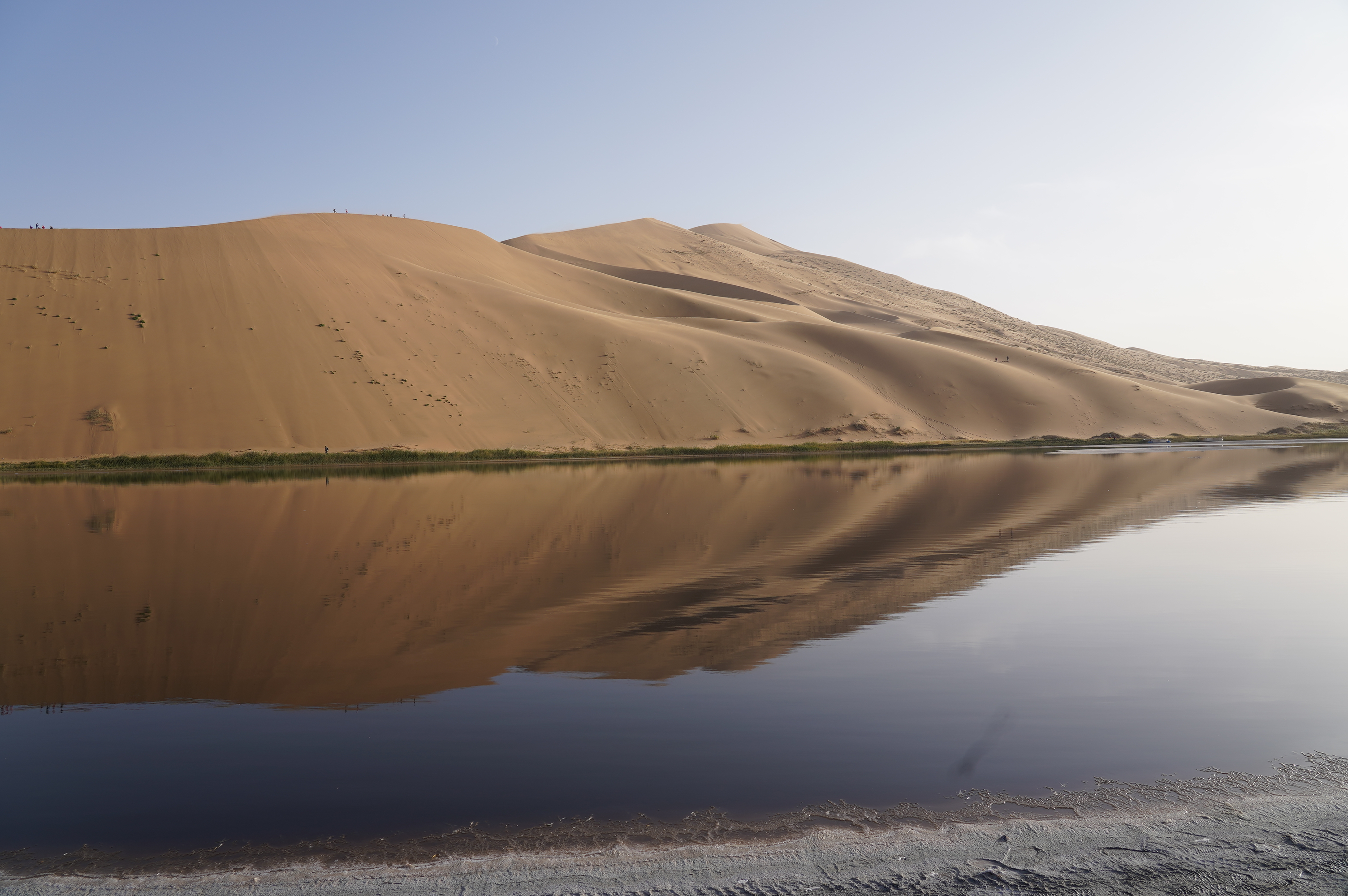 经过近9个小时的长途跋涉,下午4:30分我们来到了位于巴丹吉林沙漠深处的巴丹湖景区,眼前连绵起伏的沙山和沉静的湖水相影,形成了沙漠独特的景观。