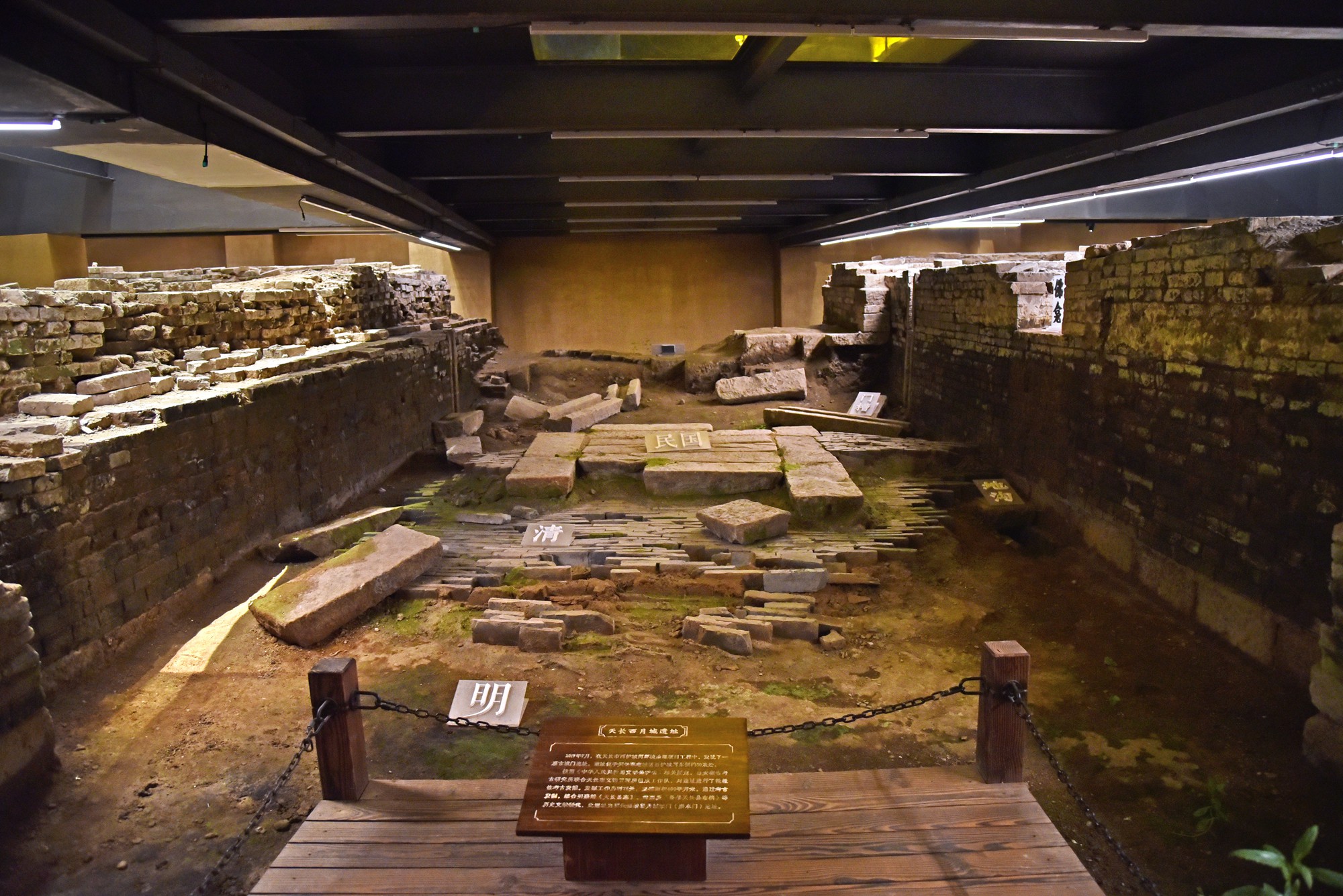 为了保护古城墙遗址,重现城门雄姿,在遗址之上重建了城门和门楼,城墙内部建成文化展示厅,展示了古城墙的来龙去脉、结构特点以及背后的故事。在博物馆透过脚下的玻璃就能看到地下的城墙遗址保护层,还可以走下去近距离参观,和四百多年前的古迹面对面。
