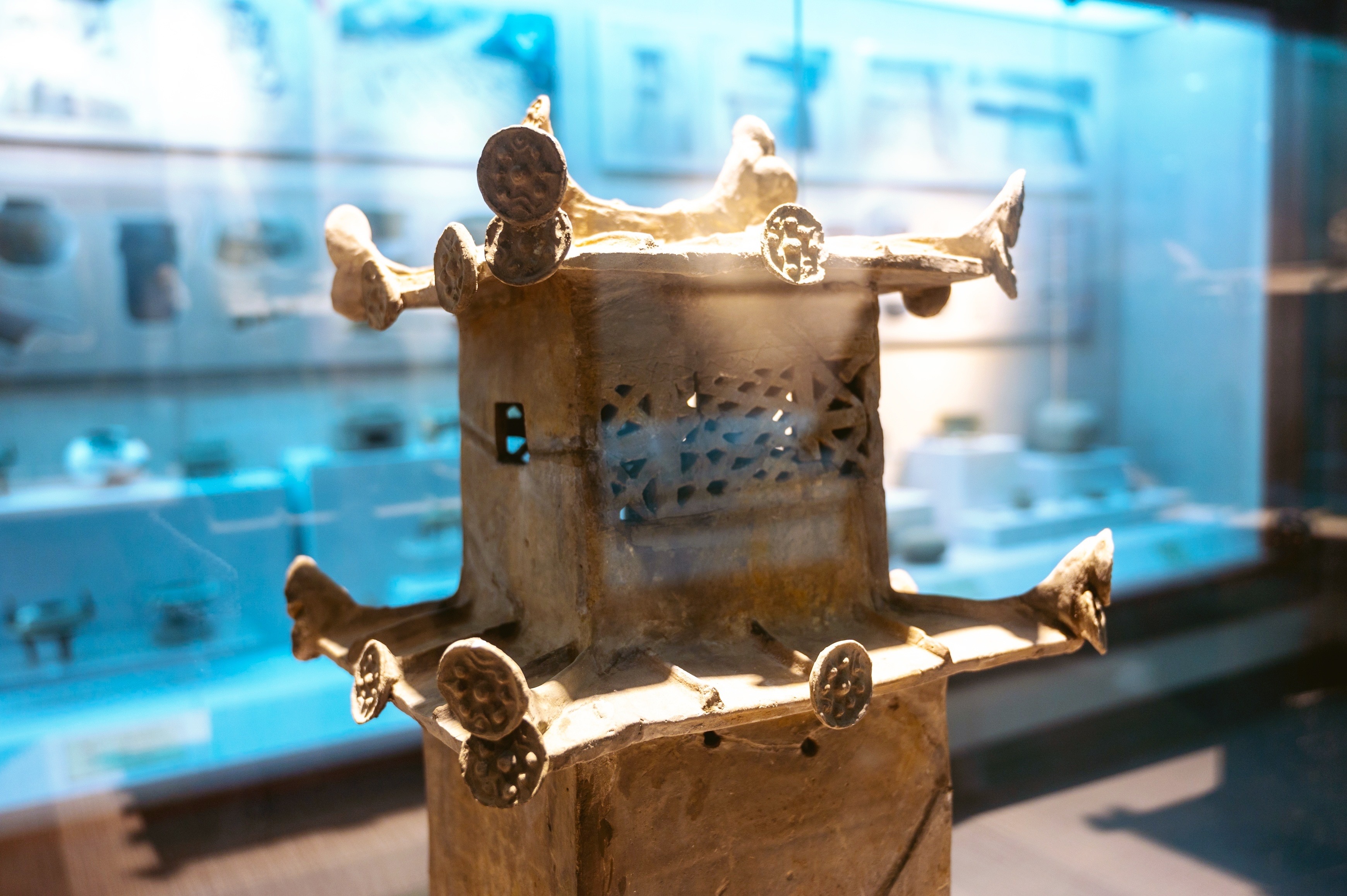 在这里可以看到丰富多彩的青铜器文物,比如西汉时期的彩绘陶盆、东汉时期的白陶翁、“昭明”铜镜、元代酱釉剔花卷草纹罐、西汉时期的海浪纹彩绘灰陶盘口壶等。