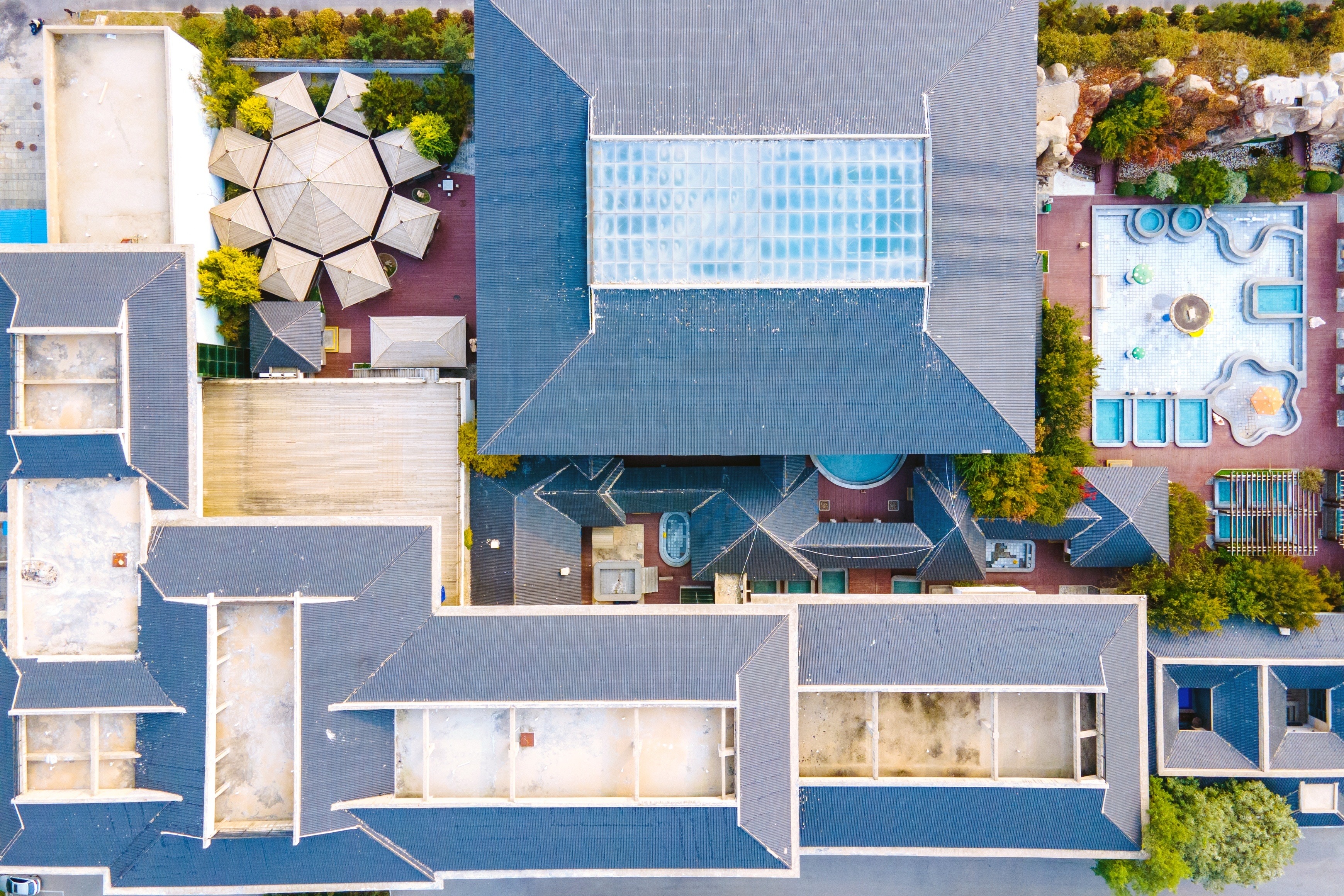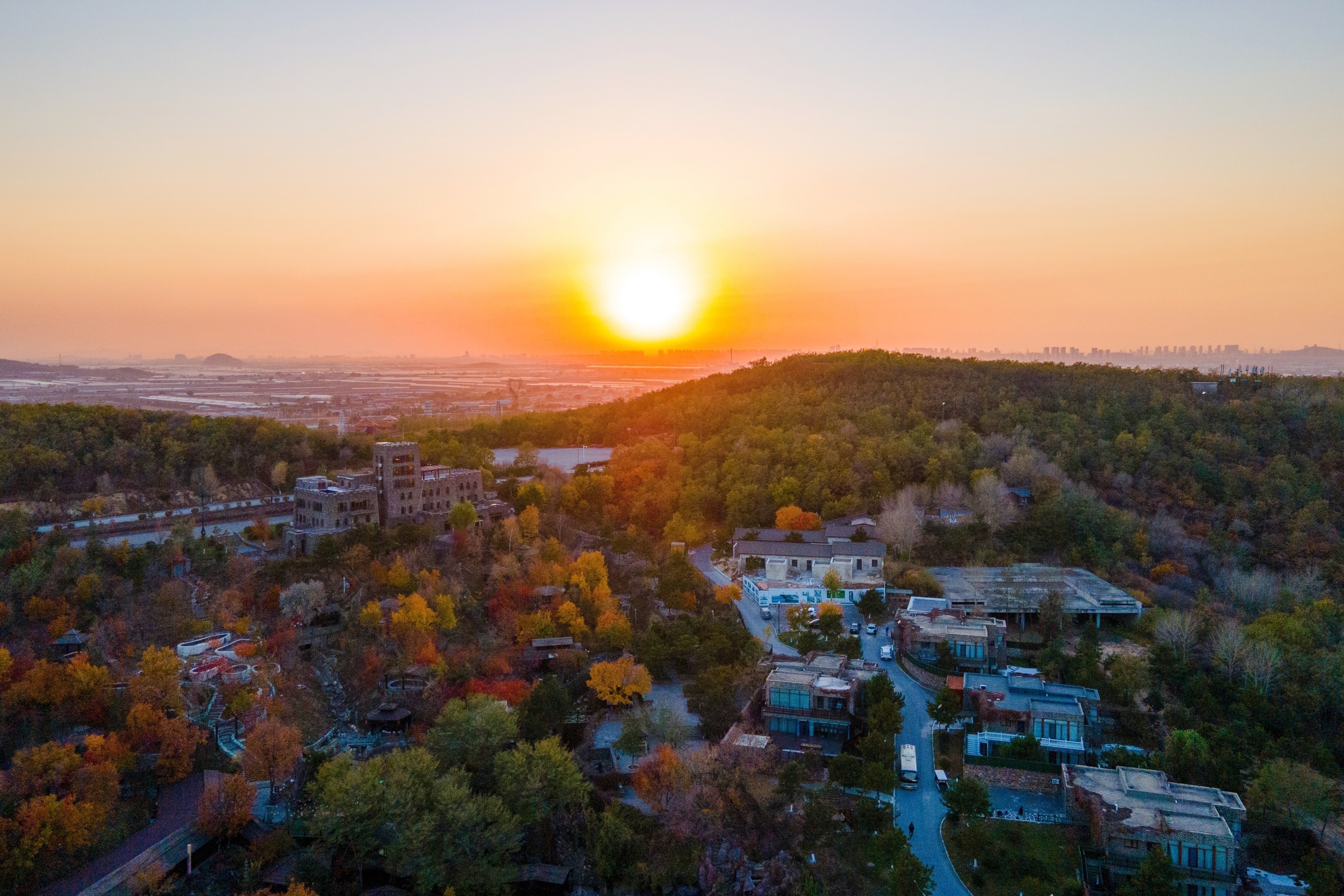 N度旅居别院由五栋独立的别墅组成,升起无人机,无人机视角下可以清晰地看到这里的林立的别墅,造型别致典雅,加之浓郁的秋色,有一种误入欧洲某个小镇的感觉,如此美景,真的想多住上一些时日,也难怪很多老人会选择到这里养老度假,一住就数月。