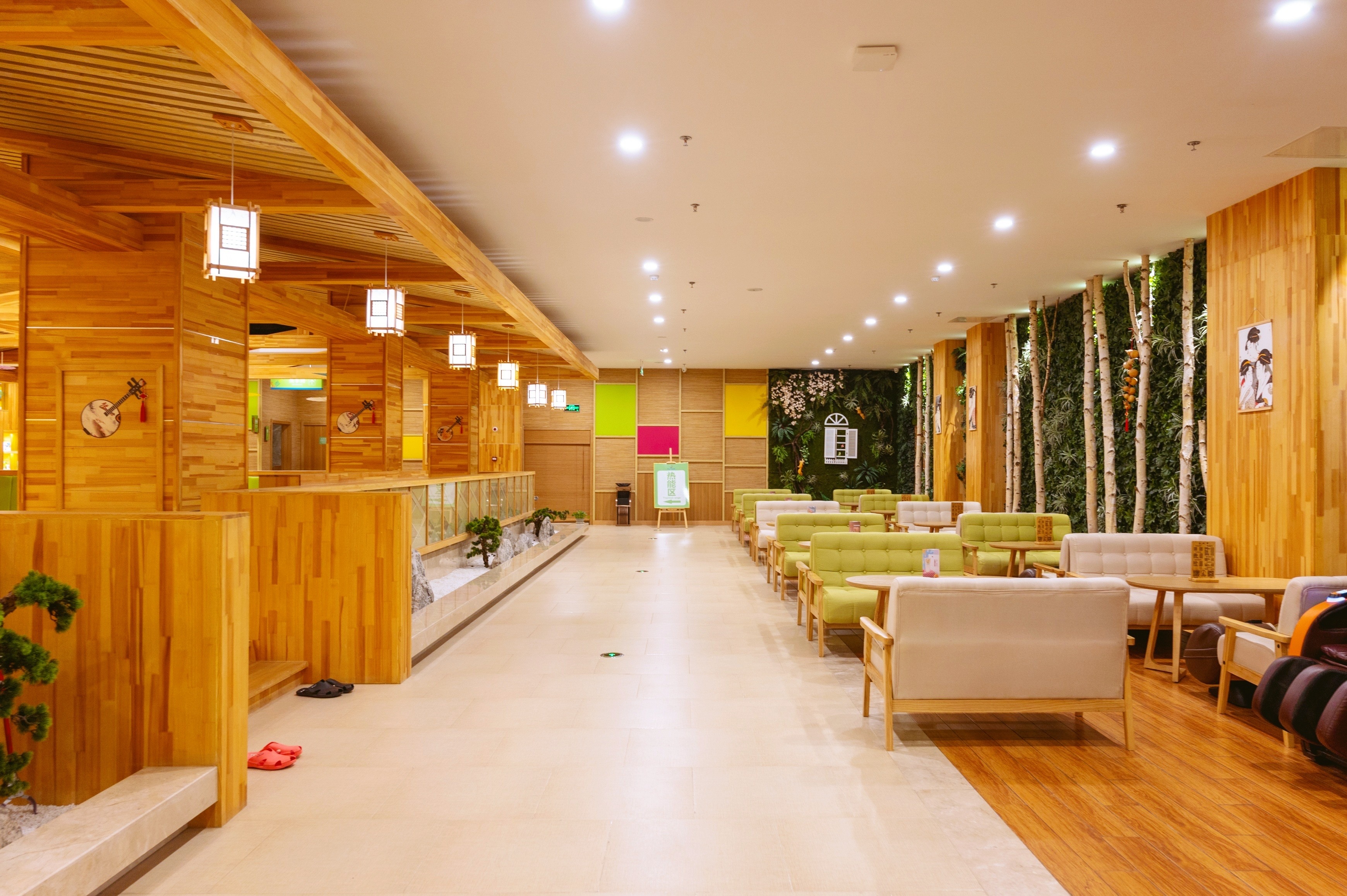 这可能是我去过的温泉酒店设施最齐全的酒店了,泡过温泉来到休息区域,这里专门设有休闲吧,大家可以坐下来聊聊天,或下下棋,一旁还有书吧,温泉之旅的阅读时光就是舒适。