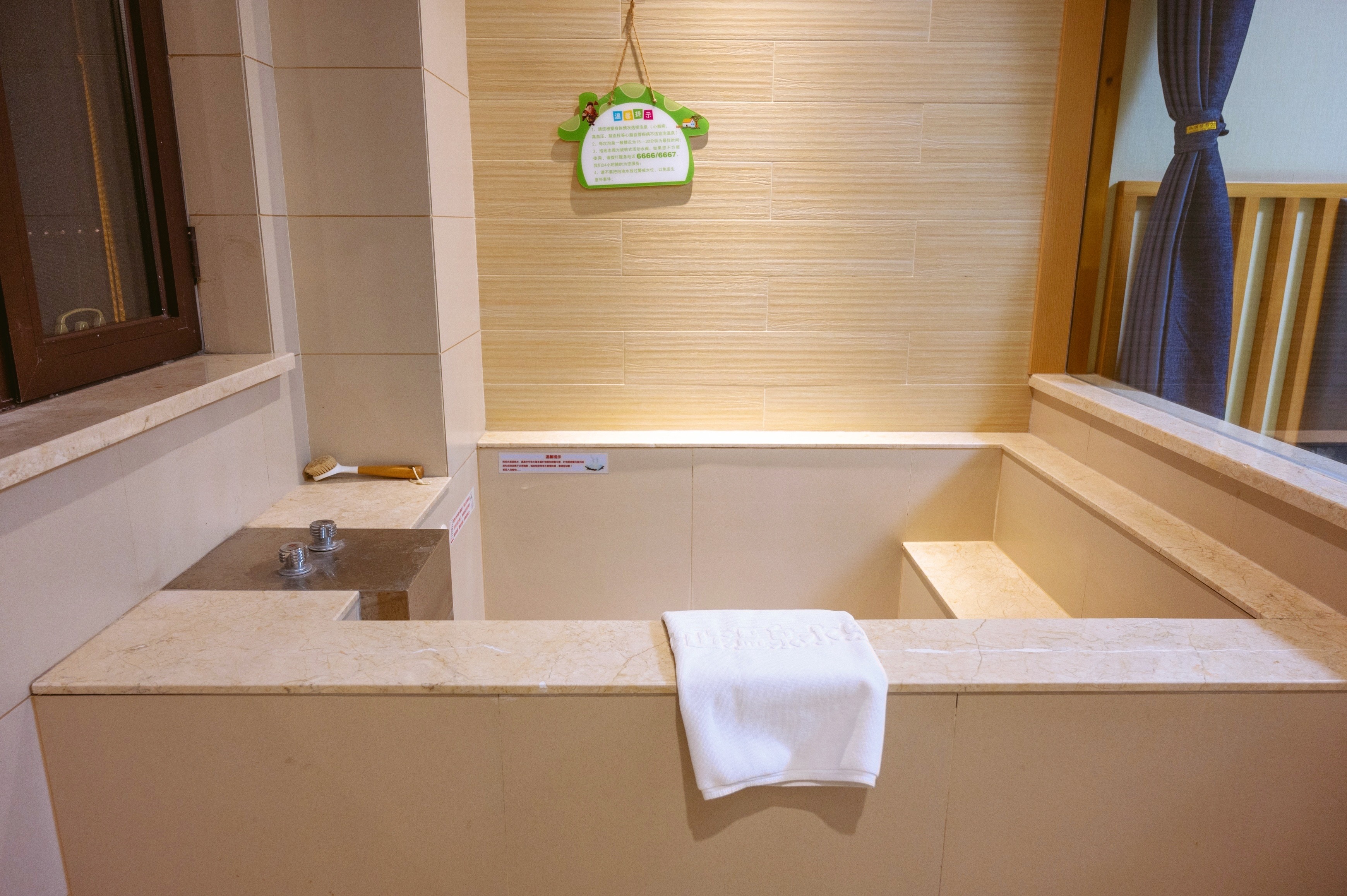 酒店拥有高级房、豪华房、别墅等多种类型的客房,我们住的院落式别墅名字叫“海南岛”,初听这个名字时,加之看到眼前的景色,真有一种走进海南岛的感觉。“海南岛”别墅非常大,我们一行9个人妥妥地住下,而且室内和室外有温泉泡池,足不出户即可享受私家温泉。