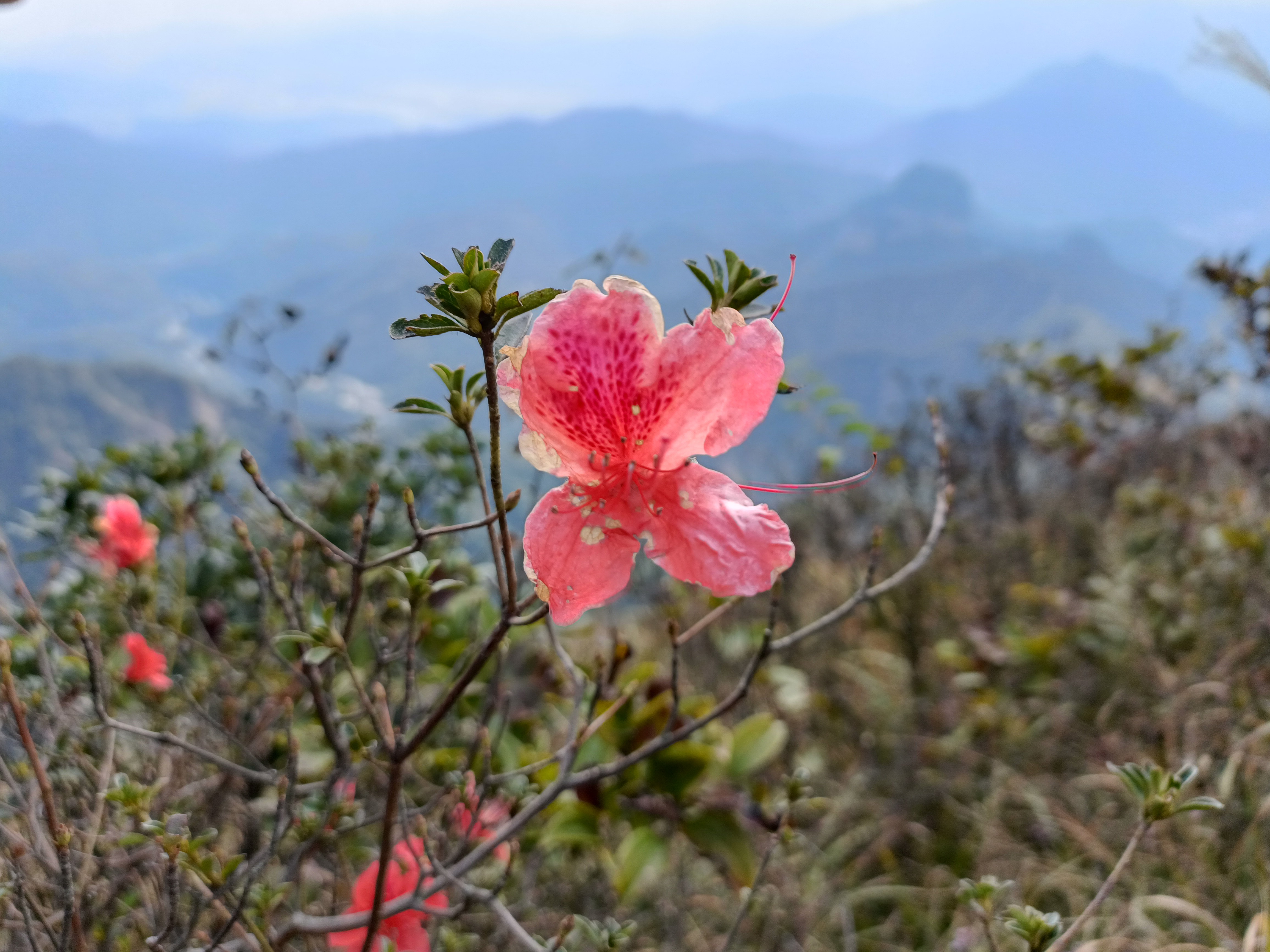 所绕道的道路,起初是一段1.5km左右的公路,而后从一个路口切入山路,约1km后来到了百岗尖的山脚下。这段路程,除去在切入山路的路口看到在指引大家的领队槑、临近百岗尖山脚下遇见几名小伙伴外,是我一人独自行走。其实,我并不畏惧一个人走路的孤独,甚至还有些喜欢一个人走路的清静。只是,依然会回想起曾经相伴山野之中的那抹靓丽,而一旦回想起,我还是会扼腕叹息,虽然已经过去那么久了。岁月无息地流淌,我早已理解了一切,也早已接受了一切。只是,当下的我还做不到彻底的释怀、彻底地放下,可能,我还再需要一段时间吧。无论如何,人潮汹涌,感谢遇见美好的伊,祝伊幸福。也祝我幸福,未来路上,一定还会有许许多多的美好发生。