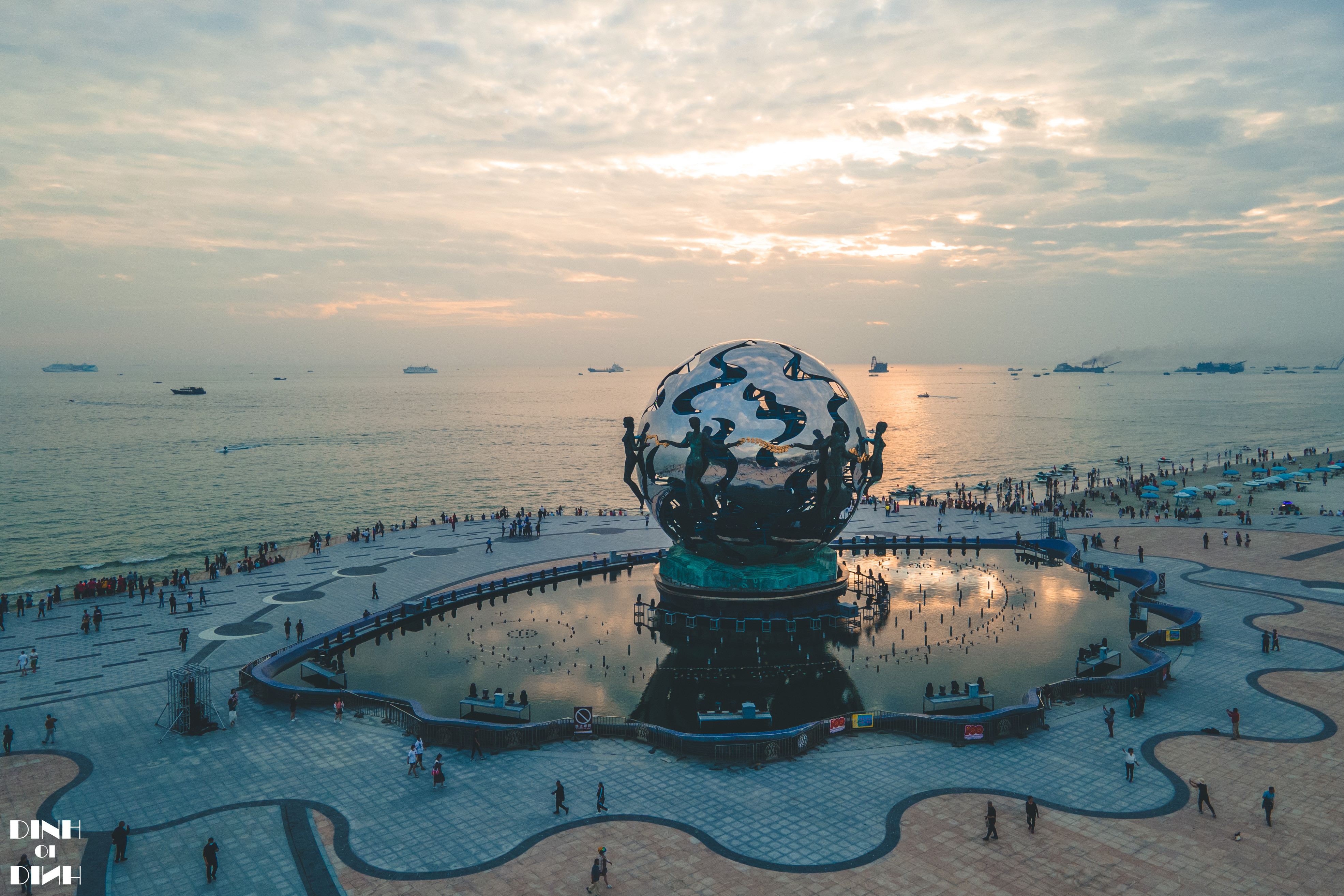 “潮”雕塑有“ 亚洲 第一钢雕”之称,也是“全世界最大的室外钢雕塑”之一。它是 北海 的地标建筑,它形如南珠,代表着 北海 蜚声海外的南珠形象,附在球体之上的七位少女铜像,婀娜多姿,各具神韵,寓意七位仙女下凡。