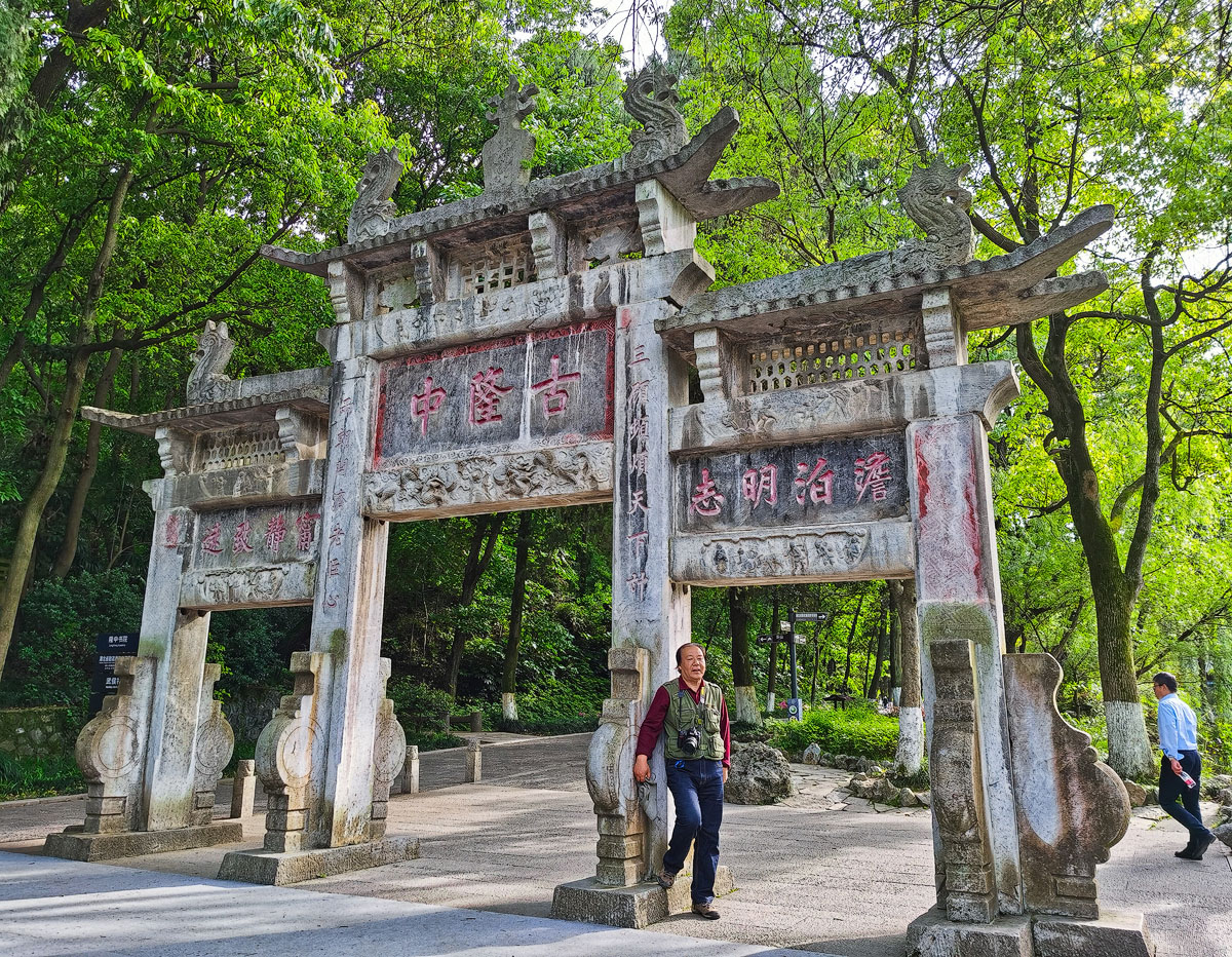 景区内交通车先把我们拉到石牌坊,它是隆中的标志性建筑,清光绪十九年所建。仿木结构,四柱 三门 楼式,高约6米宽约10米。牌坊正中的字碑上雕刻“古隆中”三个大字,一个“古”字代表了隆中悠久的历史,而隆中就是指的我们身后的隆 中山 。古籍记载: 襄阳 城西有山,隆然而中起,号曰隆中。