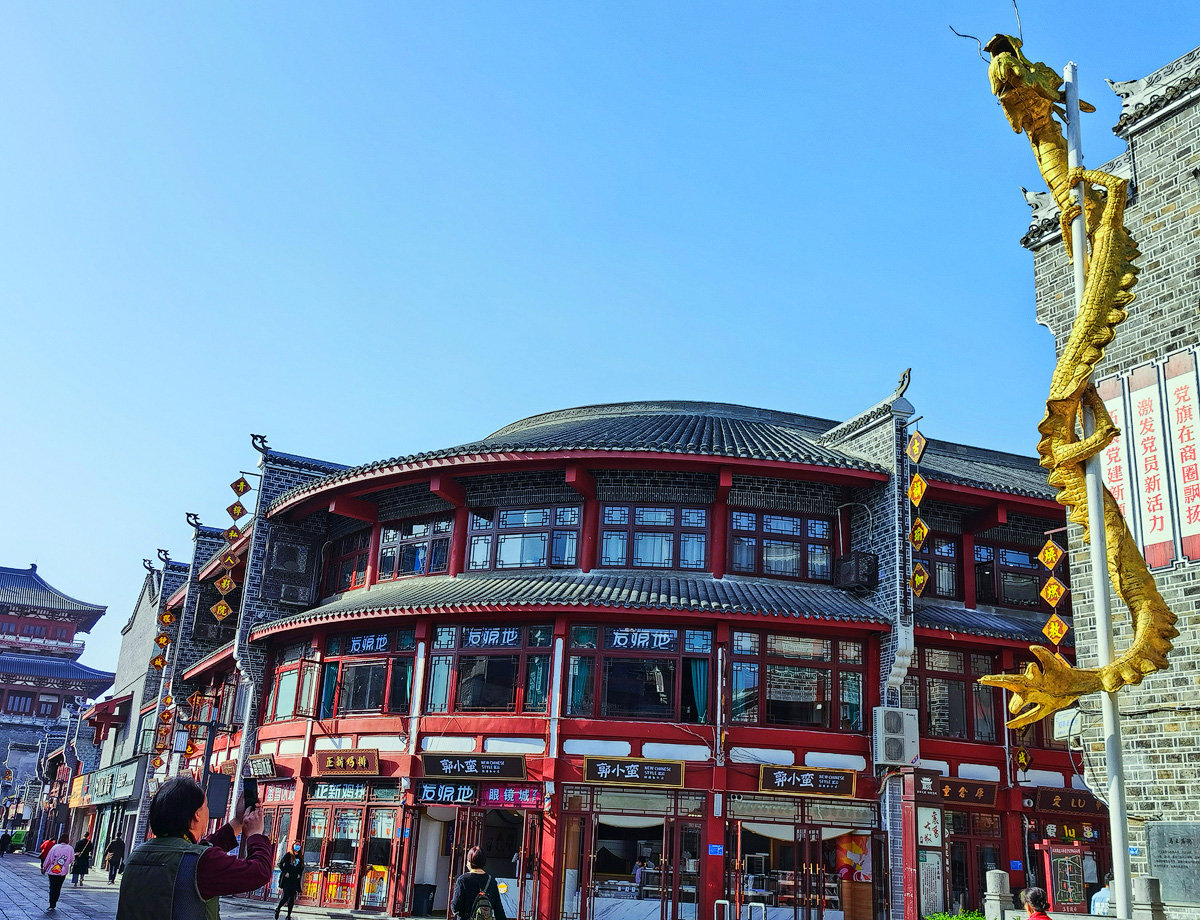回头走,我们一路拍街景,各种斗栱飞檐,古色古香的店铺亭阁,都是如此精美!