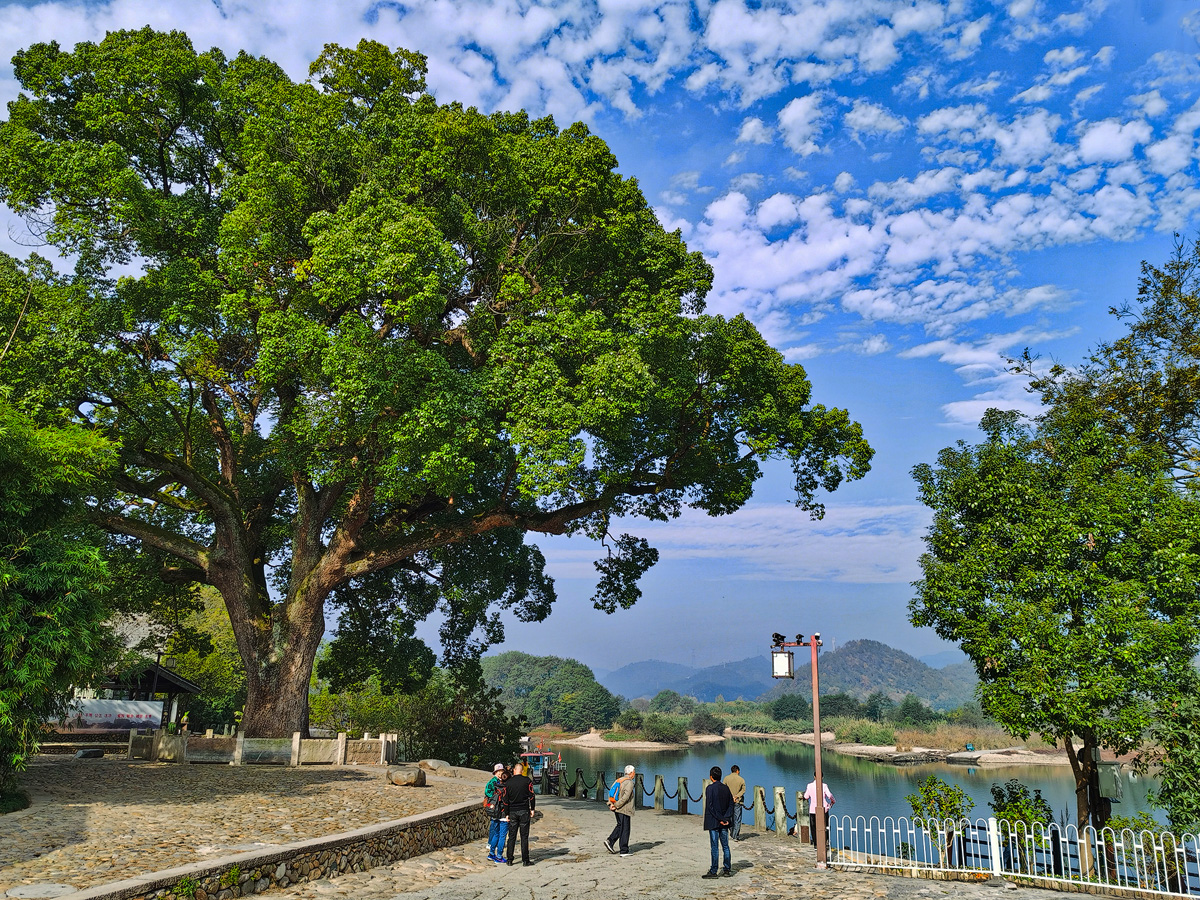 从码头坐船来到古堰画乡的“古堰”景区,这是与 都江堰 齐名的地方,古代劳动人民为引水灌溉打造的古堰。船靠上码头,一颗葱郁的 大树 ,引得众人驻足观赏。它在这片土地屹立了数百年,就像一只张开五指的手,生长在瓯江边。