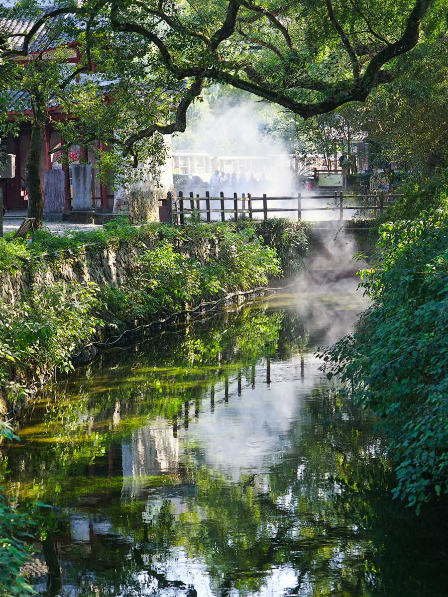 进入古村,先看见的是白雾弥漫的景色,很是别具一格,如入仙境……