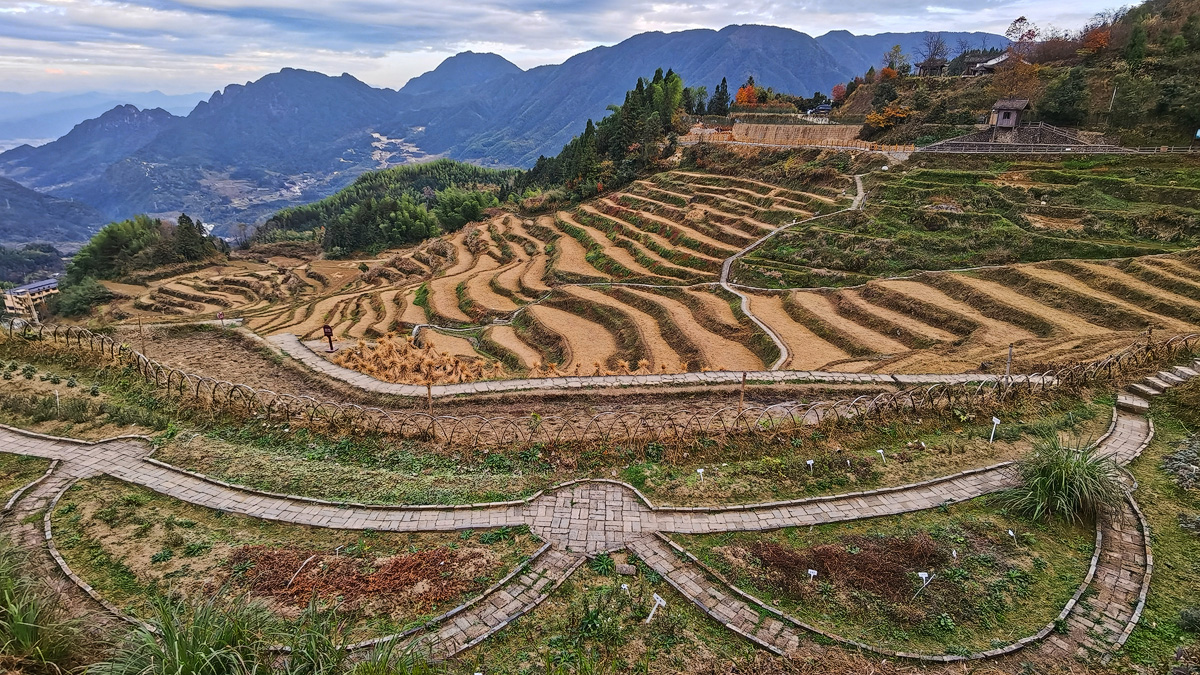 云和 九曲云环梯田,是千年历史、千米落差、千层梯田。游客们步入景区,纷纷拿起手机拍摄这云上的梯田。