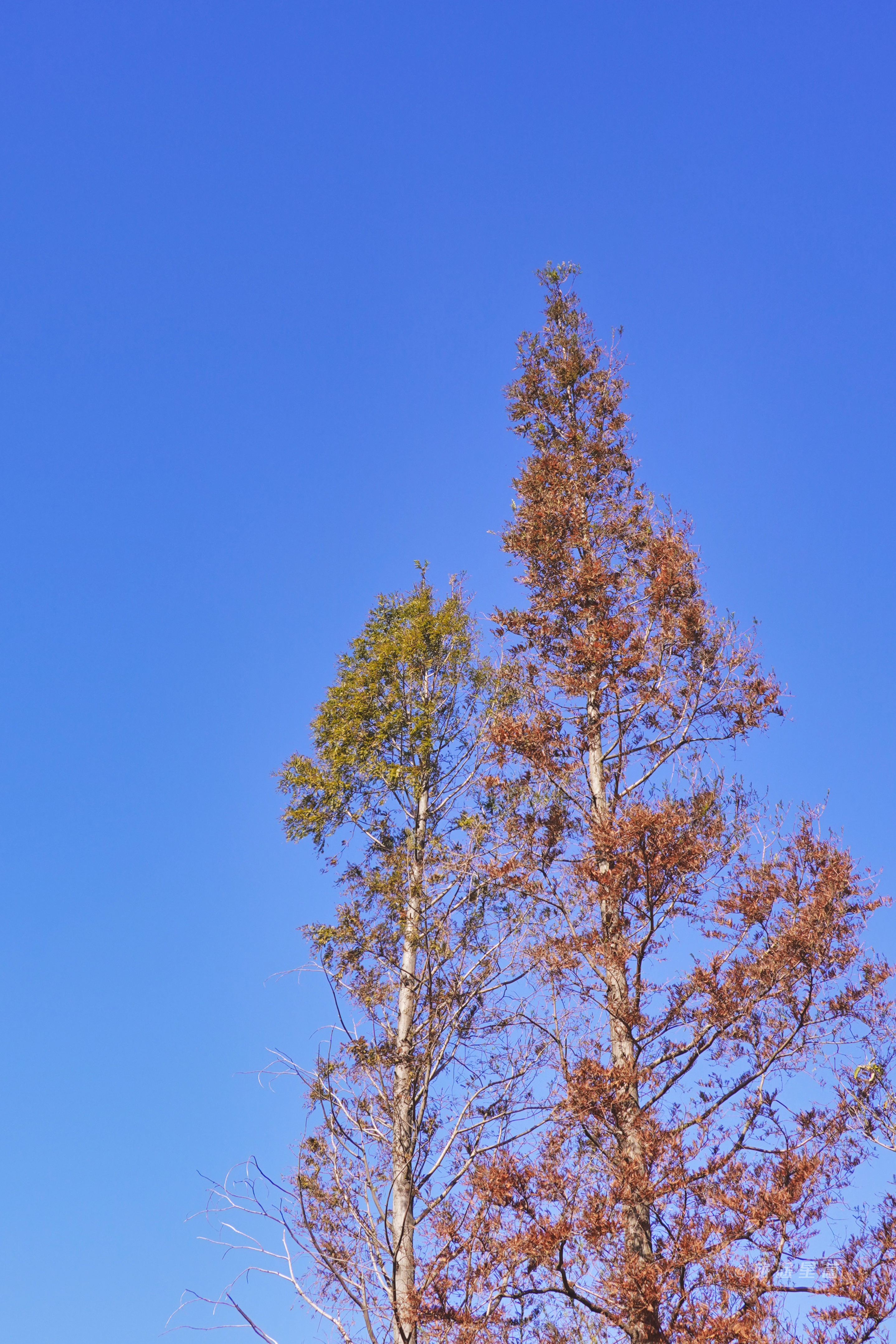 一颗颗水杉矗立在水中,像一座座宝塔,高耸入云,偶有飞鸟掠过,像是也在欣赏水杉的美。