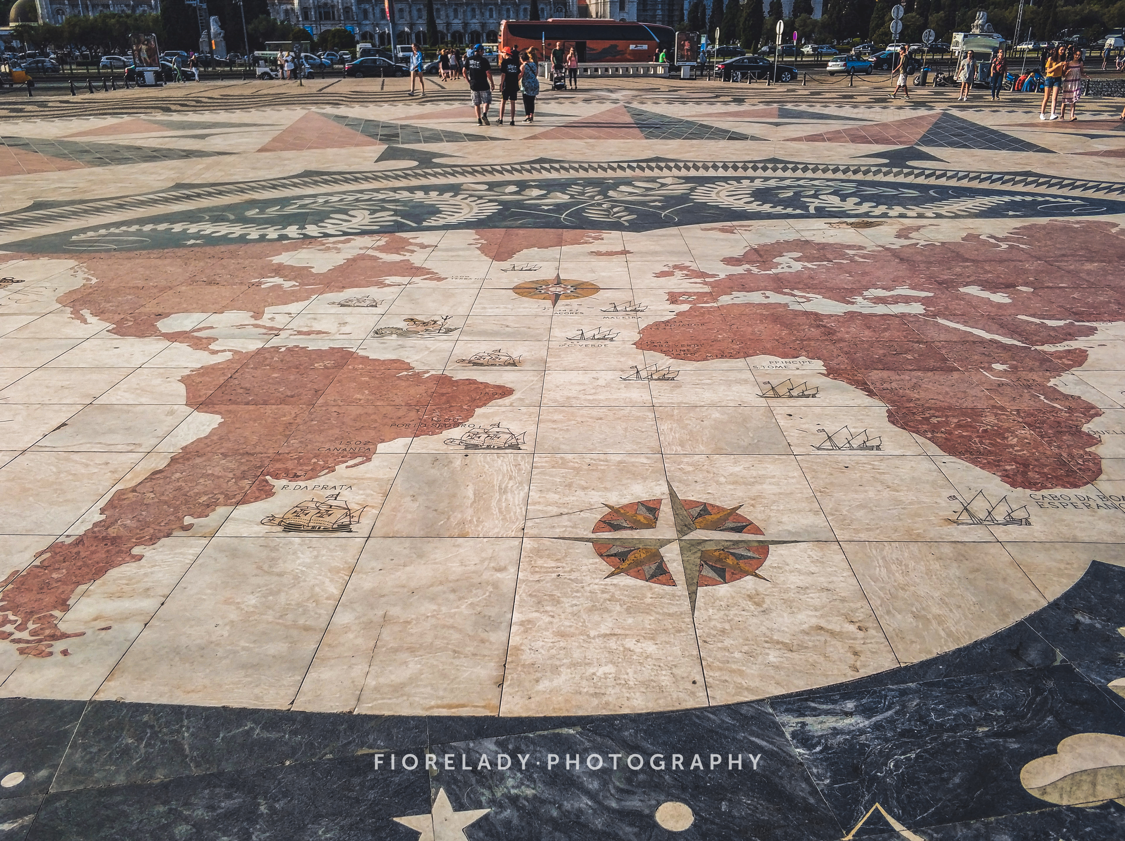 纪念碑前方的广场上是一个大型的航海罗盘,中央是一张世界全图,标记着航海家航海到达的地点和时间。