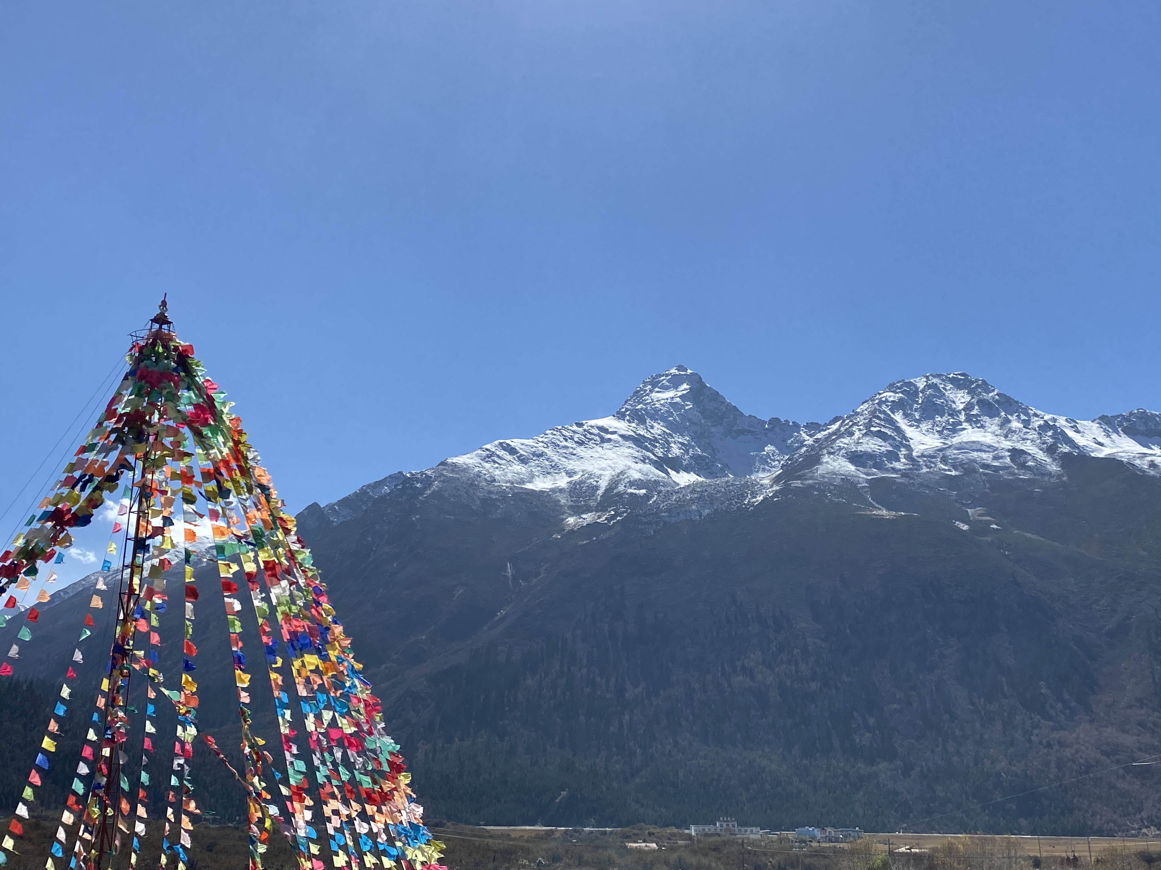 这个山口也因羊累了在此休息而得名羊子山口。更是由于三世达赖在此休息过,方圆百里藏民把它奉为神山。那里挂满随风飘动的经幡,那些五色纸印着马和经文的方块纸叫“隆达”意为风马,就是当地藏民为祈祷全家一年平安和外出顺利,每年新年伊始到此挂经幡,路过这里的人就撒五色风马纸,用风力飘动经幡、飘飞风马纸,向神灵传递祈祷的语言。