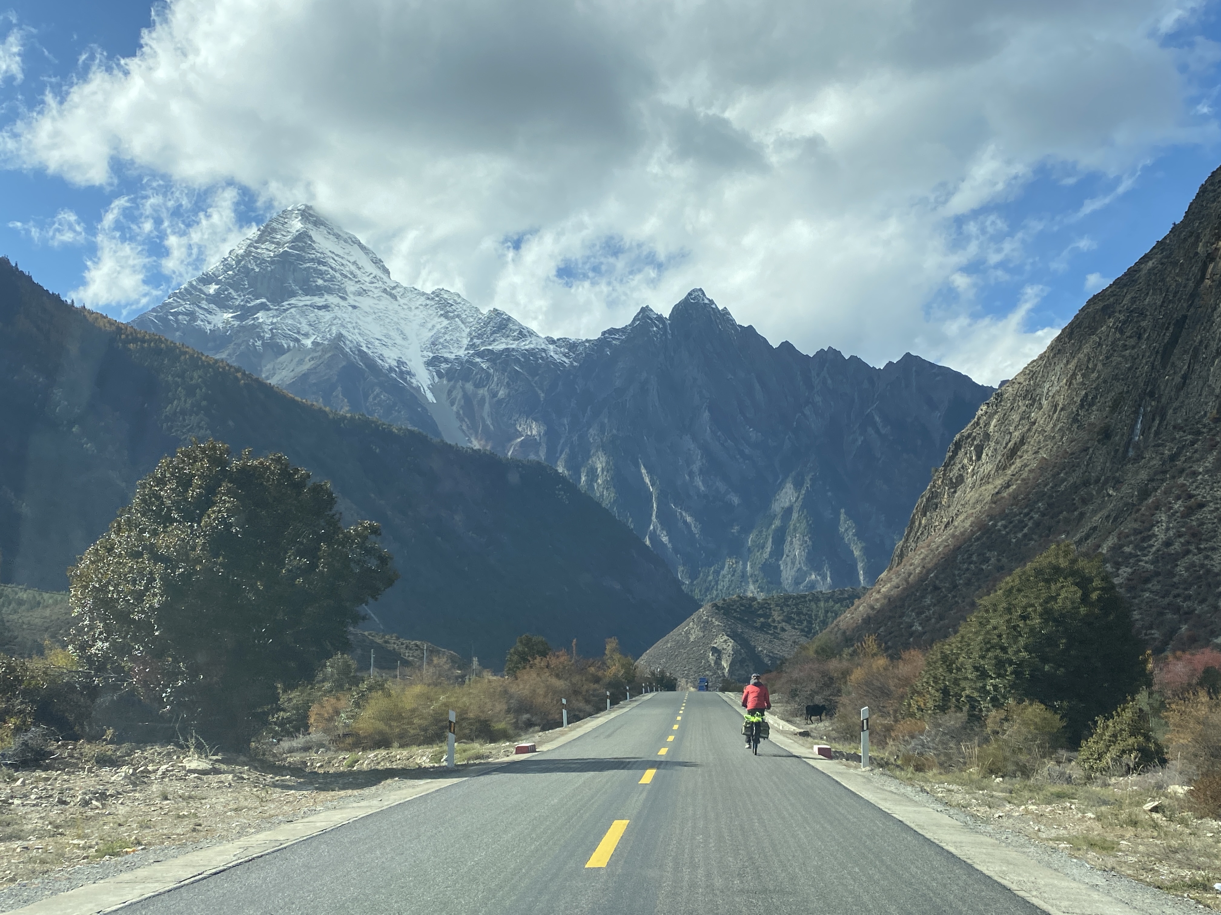 去林芝的路上。看到了骑行者。骑行去西藏是很多热爱骑行人的终极梦想,脚踩着单车,跨越千山万水到达西藏。