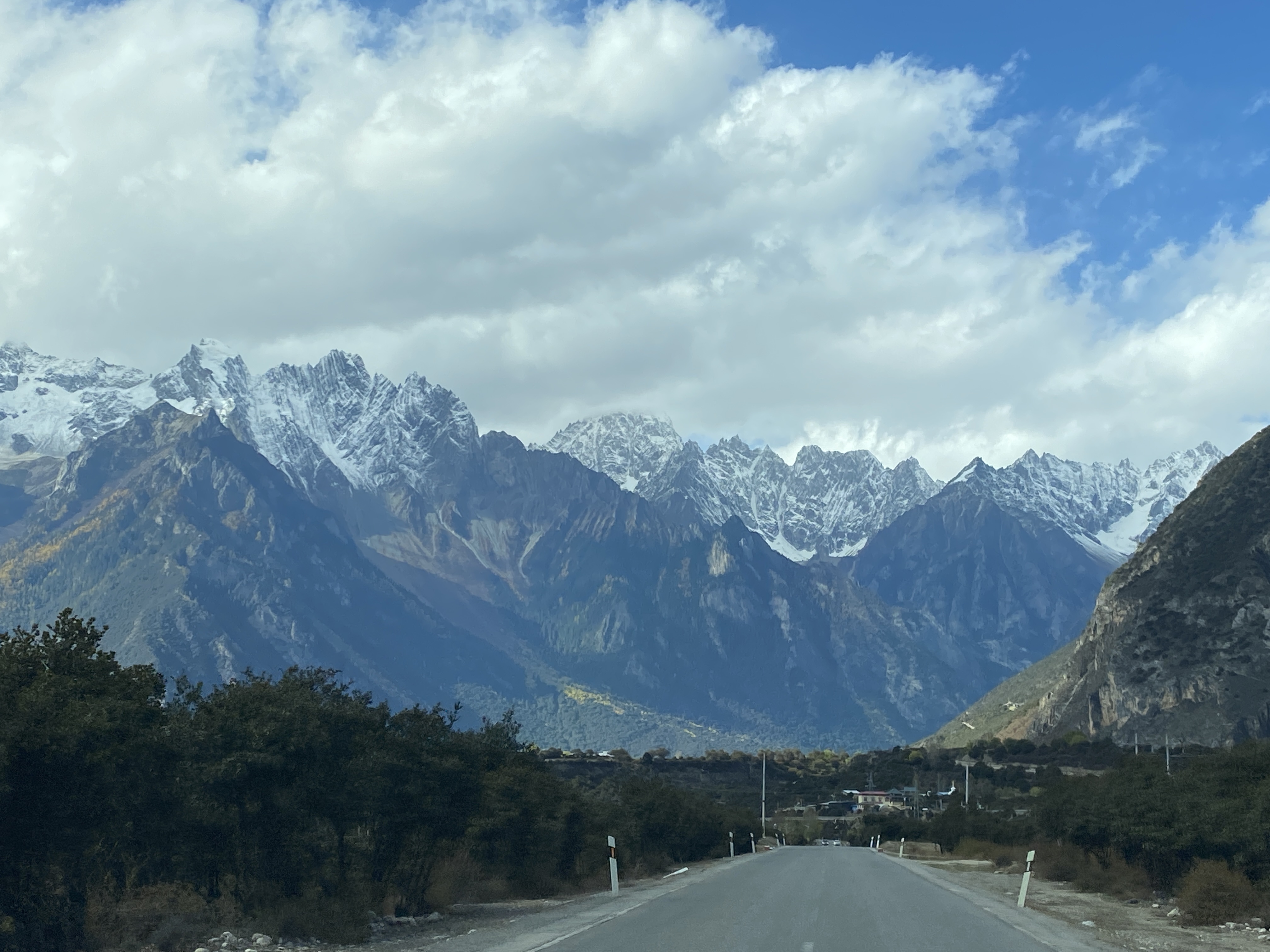 车行驶过康定城往折多山方向,陆续就能看到雪山了。第一次看见雪山,只能一路 WO KAO 实在想不出其他的词来形容了。