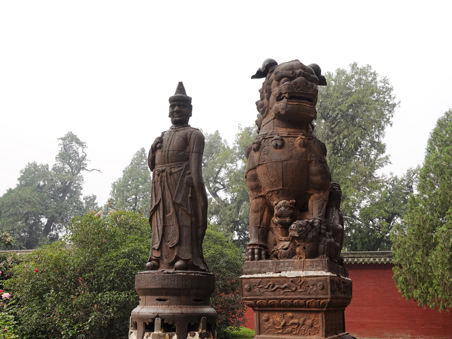 御书楼后崇宁殿前的院子里,有石华表,有焚表塔,有铁旗杆,还有铁铸的狮子和武士