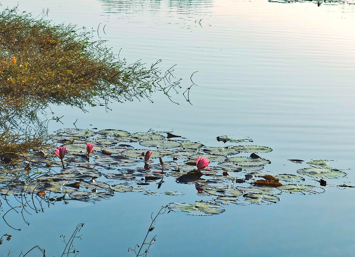 喜欢池杉湖里的睡莲,有紫红,粉红,白色的,大多已萎谢,但还有含苞待放……