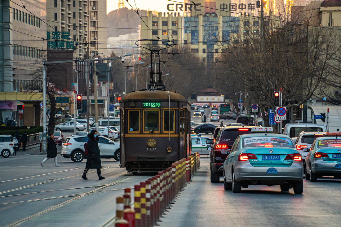 老电车驶来了,这可是来大连绝对不能错过的体验,201复古电车也是大连的城市名片之一。