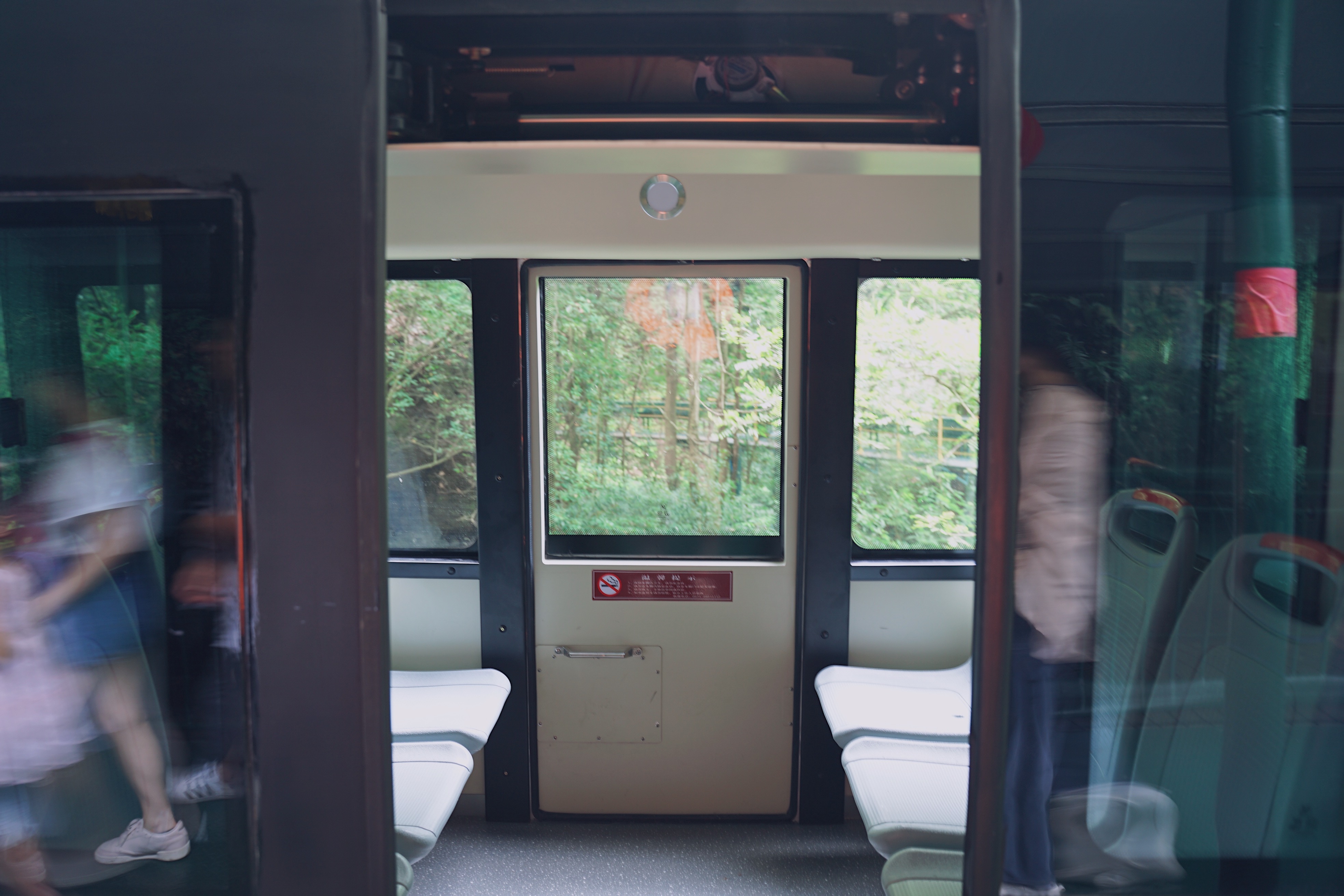 幸福列车是山中观景的小火车,由下隐潭至妙 高台 两个站点之间摆渡,全程耗时七至八分钟,大约半小时一辆。一节车厢可以坐六个人,冷气特别足,两边都有通透的车窗,小火车穿梭于山间,可以看到山谷下和远处的瀑布,有种 瑞士 高山小火车的感觉。