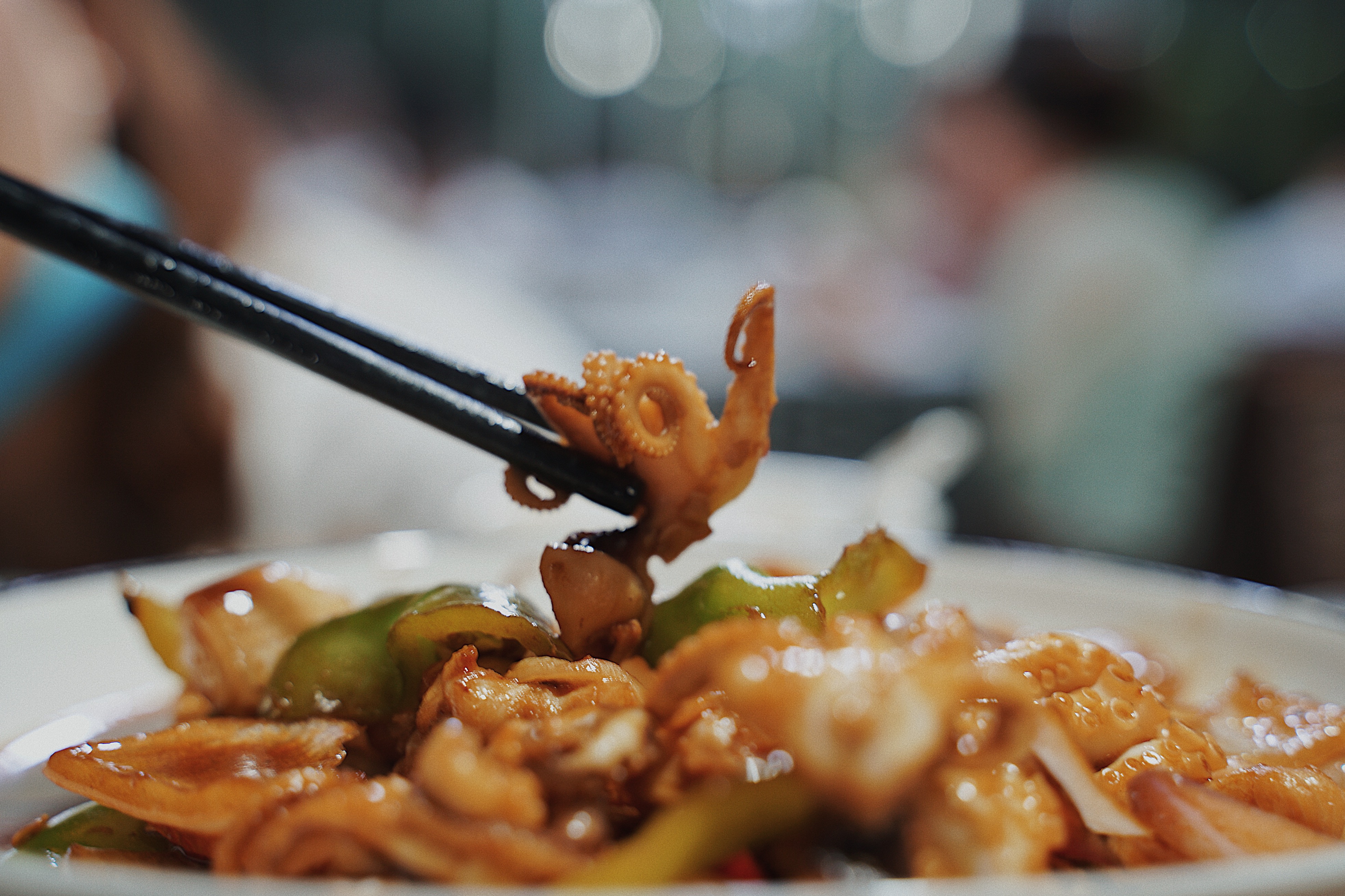 店铺里的小炒各个都是老板的拿手绝活:红烧鸡爪个头虽小但却炖得软糯入味,放入口中稍一咀嚼骨头与肉便毫不眷恋地分离开来;爆炒八爪鱼鲜嫩Q弹,带有青椒特有的香气;各种溪鱼或是油炸、或是红烧,因为都是新鲜捕捞,肉质鲜嫩、细腻可口;椒盐鸭头香辣酥脆,最适合下酒……