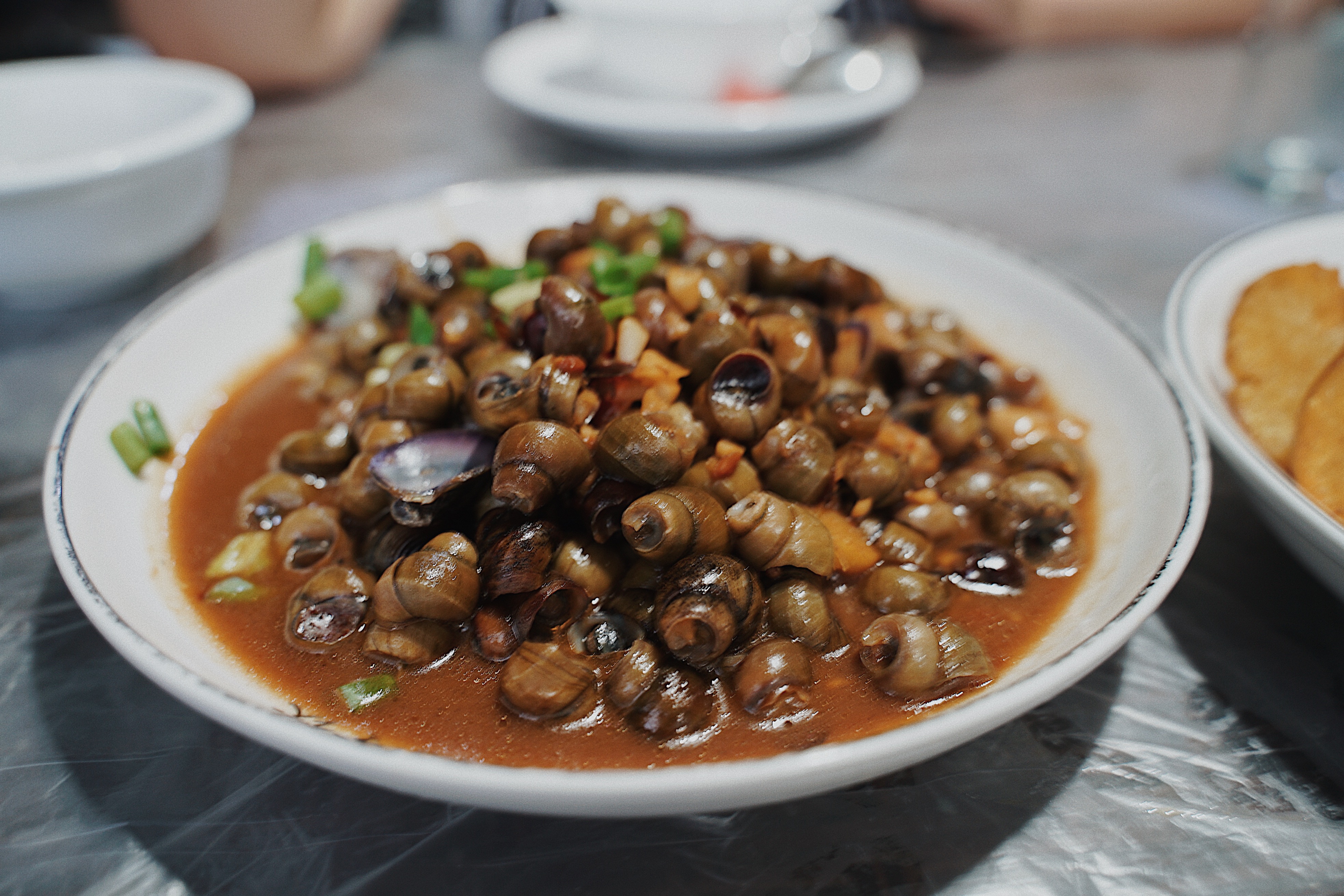 奉化 的沿海地区盛产各种小海鲜,野生泥螺脆爽美味,葱油或是爆炒,便是餐桌上鲜掉眉毛的一道美味。