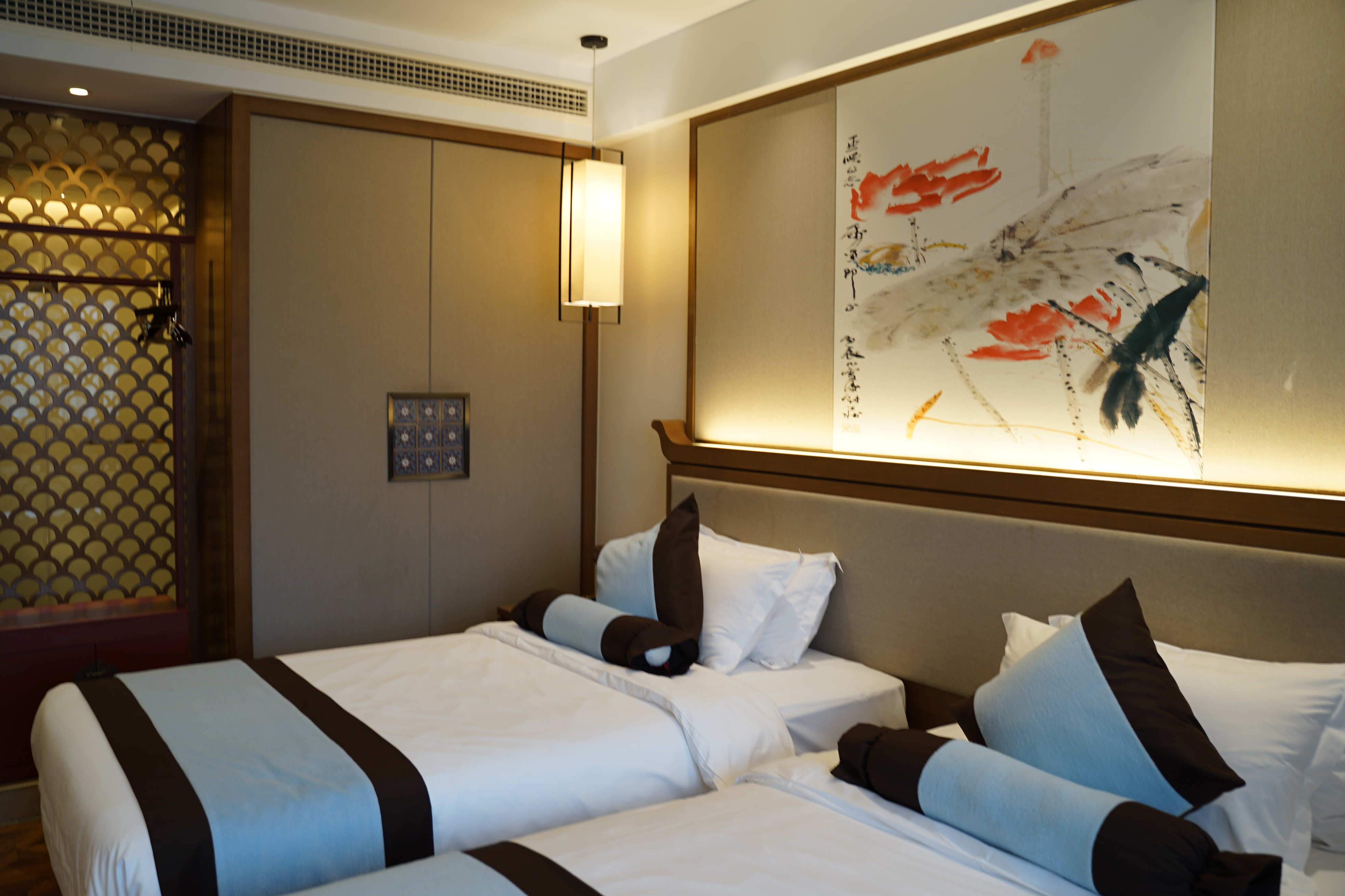 四季青藤酒店位于武岭入口不远处,几乎算是镇上最繁华的场所,去蒋氏故居、镇上的餐厅都非常近。房间内部装饰相当考究:中式的吊灯、台灯、花瓶、装饰画一应俱全,连走廊里都摆满了相当有格调的装饰品。